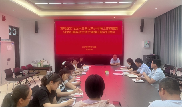 为深入解读习近平总书记在河南考察时的重要讲话精神,引导党员干部深刻领会精神实质,切实将总书记的要求贯彻落实到实际工作中。2025年6月17日,计划财务处党支部开展了“贯彻落实习近平总书记关于河南工作的重要讲话和重要指示批示精神”主题党日活动,全体党员参加,会议由支部书记李冠军主持。