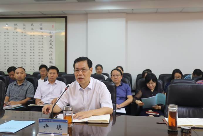 党委书记许琰简要介绍我校的历史沿革及发展情况,对省属高校财务专项治理和审计整改工作提出了要求,他要求各部门要提高认识,站在讲政治的高度,积极配合工作组做好财务检查和审计整改;要以此次检查为契机,正视工作中的问题,及时整改提高,不断提高学校综合治理能力,保证各项经济活动规范、健康、有序发展,为中原出彩做出贡献。