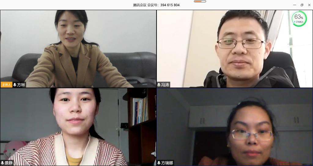 3月18日下午,教育教学督导室通过腾讯视频会议召开了部门工作会议,部门全体人员参加会议,会议由督导室主任冯涛主持。