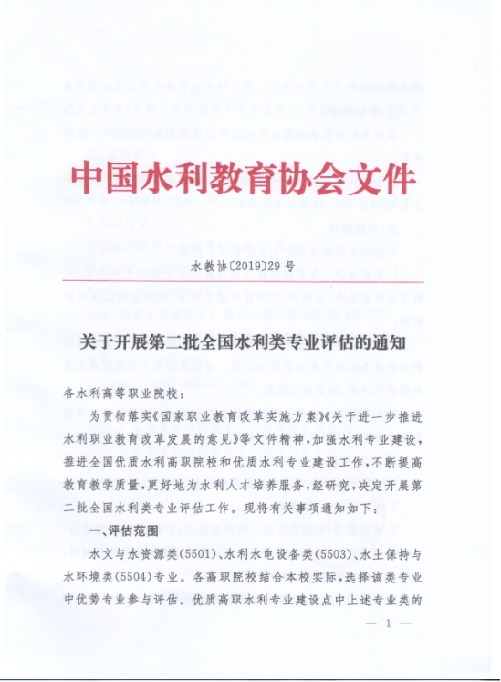 关于开展第二批全国水利类专业评估的通知