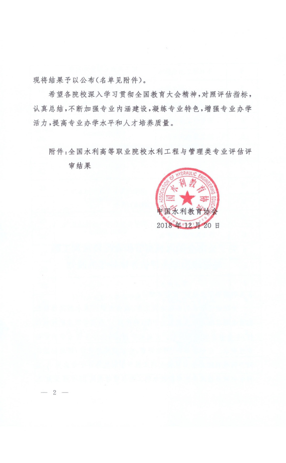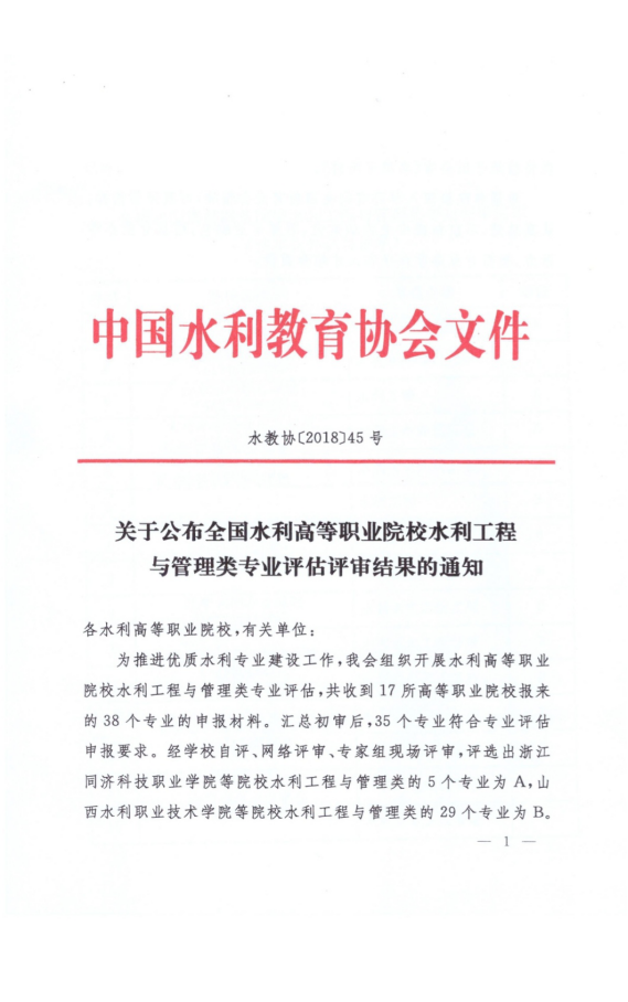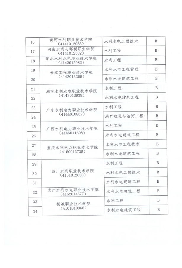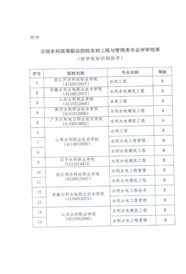 关于公布全国水利高等职业院校水利工程与管理类专业评估评审结果的通知