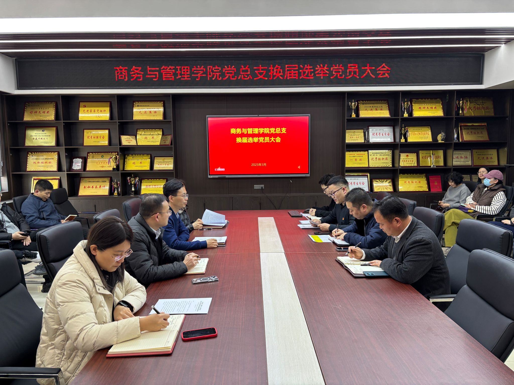 2024年3月18日,商务与管理学院党总支委员会换届选举大会在学院党员活动室顺利举行。此次党员大会以“凝心聚力 创新实干 追求卓越,全面开启学院各项事业高质量发展新征程”为主题,旨在以此次党总支委员会换届选举为契机,进一步加强党组织建设,推动学院各项工作再上新台阶。会议由党总支办公室主任刘志刚同志主持,学院领导班子和全体师生党员参加了此次大会。