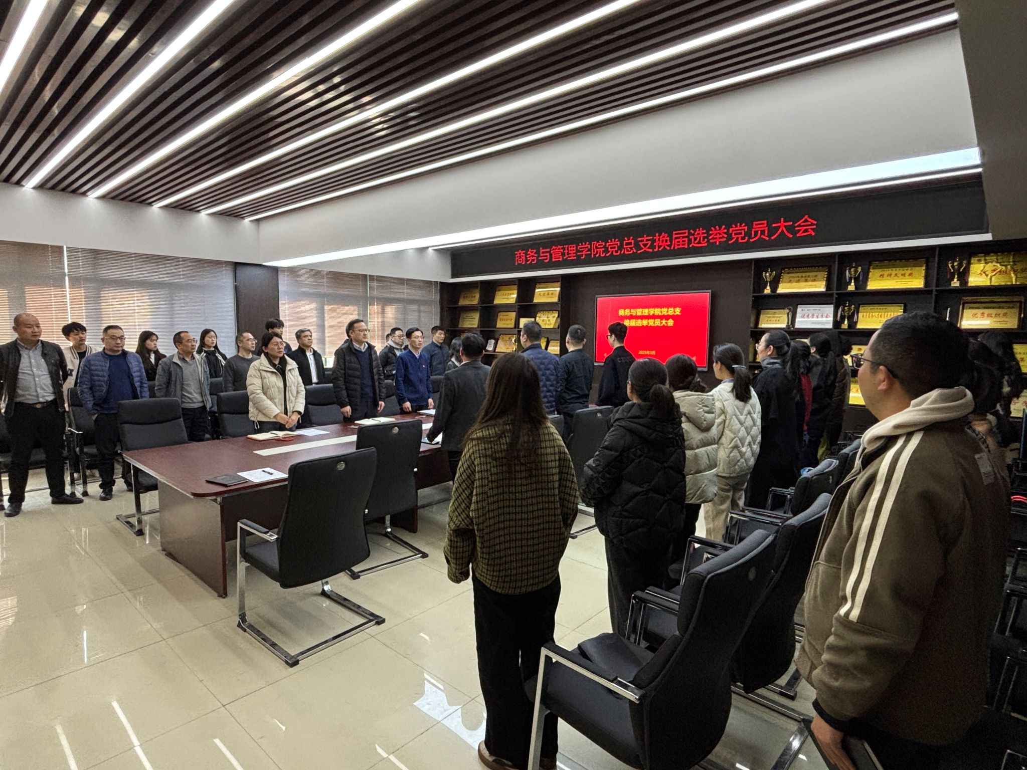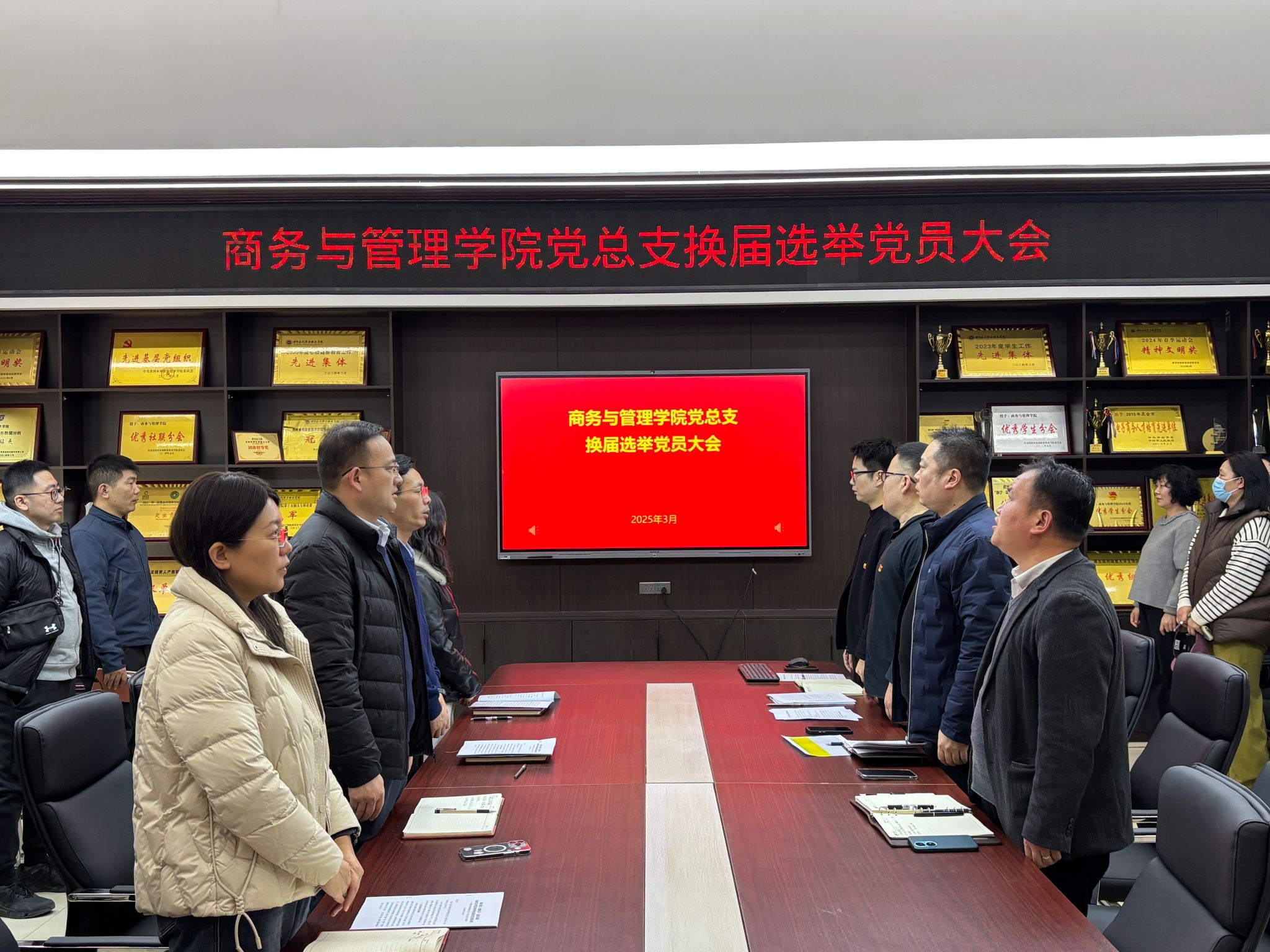 大会在《国际歌》中圆满结束。本次党总支换届选举大会的成功召开,不仅为学院党组织注入了新的活力,也为今后学院事业发展奠定了基础、指明了方向。商务与管理学院党总支将始终坚持党建引领,全面贯彻落实校党委各项工作部署,不忘初心、砥砺奋进,团结带领学院全体党员师生凝心聚力、创新实干,着力推进党建与业务融合发展,全面开启学院各项事业高质量发展新征程。