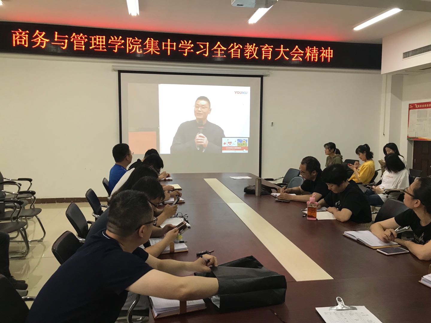 5月28日下午,商务与管理学院全体教职工在实训楼5420召开学习会,集中学习全省教育大会精神。会议由教工支部书记刘志刚主持。