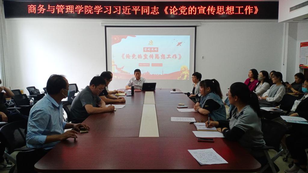 5月11日下午,商务与管理学院在党员活动室SY5420集中学习习近平同志《论党的宣传思想工作》,全体教职工参加会议,会议由党总支书记樊建科主持。