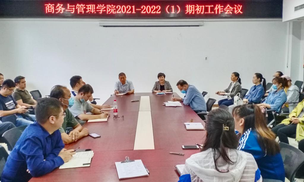 8月31日下午,商务与管理学院在实训楼5420召开2021-2022(1)学期期初教学工作布置会。学院领导班子、各教研室负责人及全体教师参加了此次会议。会议由院长周爱荣主持。