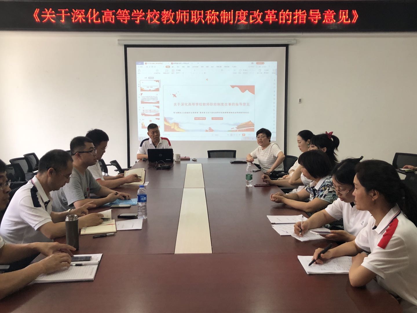 樊建科又领学了《关于深化高等学校教师职称制度改革的指导意见》的文件精神。他结合学院实际工作,重点解读了总体要求、主要内容和组织实施等三个方面的内容。他号召大家深刻领会文件精神,以德为先,教书育人,进一步提升自身的品德、能力和业绩,为高等教育事业发展提供人才支持,助推高等教育内涵式发展,助力我校“双高校”建设。