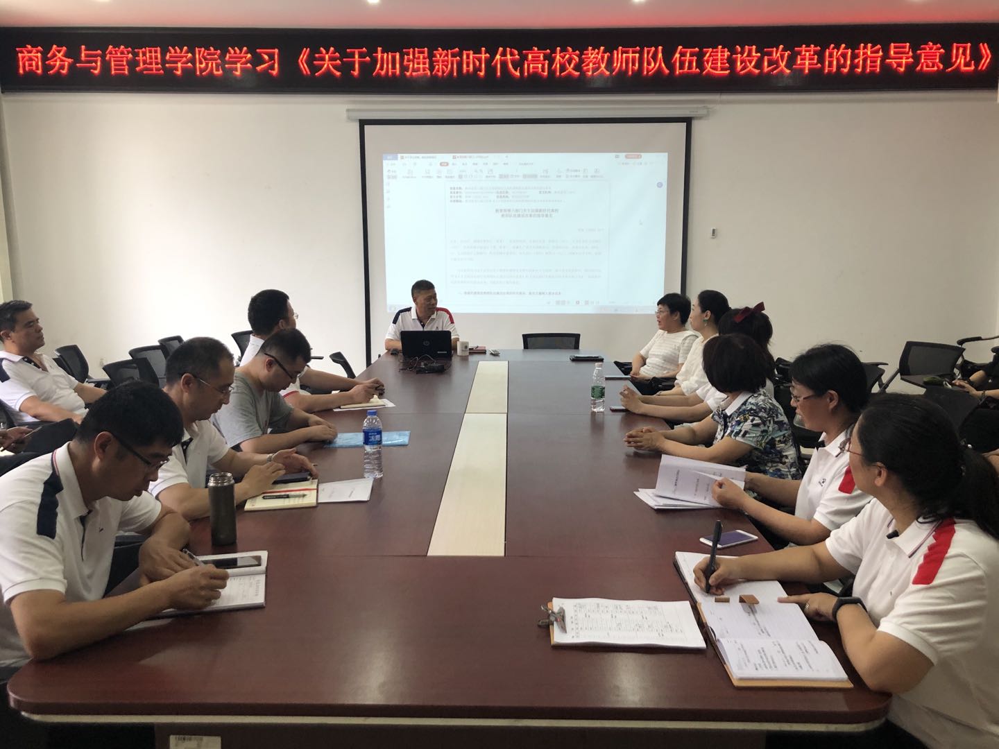68日下午,商务与管理学院在党员活动室SY5420召开政治理论学习会,深入学习《关于加强新时代高校教师队伍建设改革的指导意见》、《关于深化高等学校教师职称制度改革的指导意见》的重要精神。全体教职工参加会议,会议由党总支书记樊建科主持。