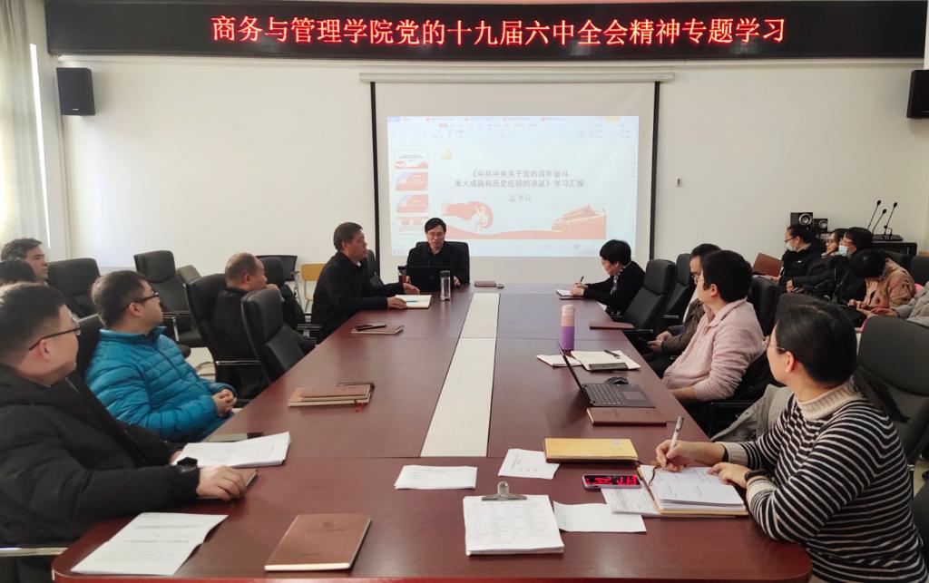 1228日下午,我校马克思主义学院孟卫兵老师来我院SY5420党员活动室宣讲党的十九届六中全会精神。我院全体教职工参加报告会。会议由院党总支书记樊建科主持。