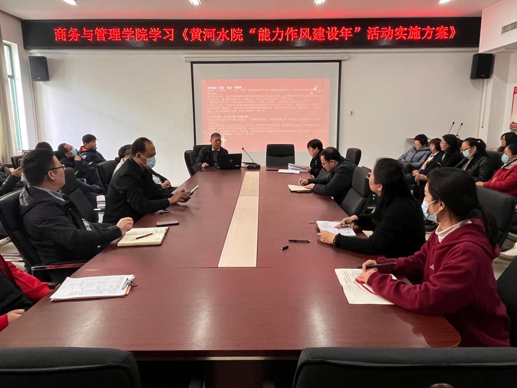 31日下午,商务与管理学院在党员活动室SY5420学习习近平总书记关于能力作风建设的重要论述和《黄河水利职业技术学院“能力作风建设年”活动实施方案》。全体教职工参加会议,会议由党总支书记樊建科主持。
