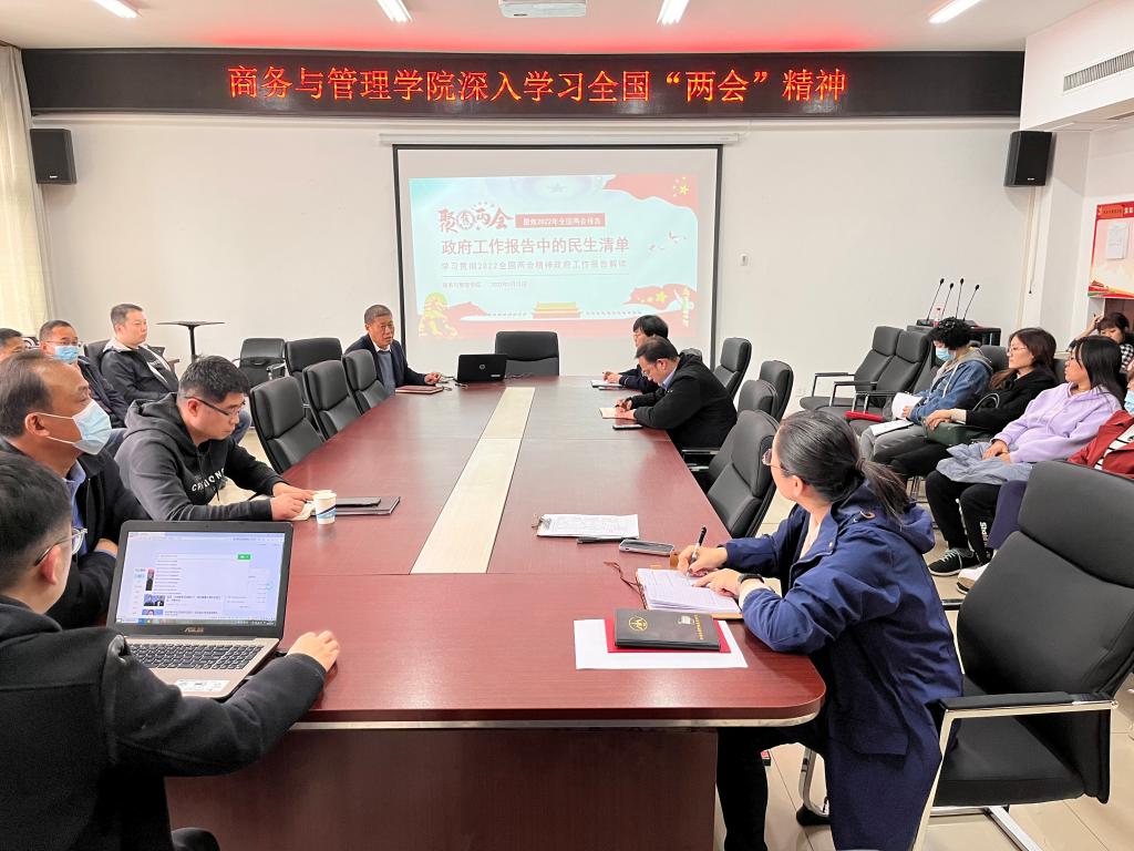 3月15日下午,商务与管理学院在党员活动室SY5420召开全国“两会”精神专题学习会议。全体教职工参加会议,会议由党总支书记樊建科主持。