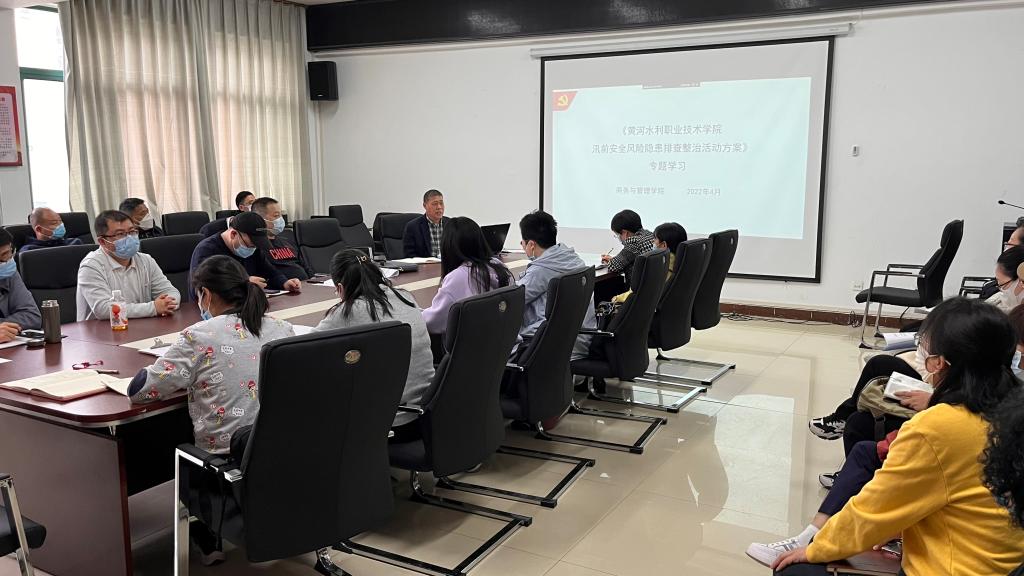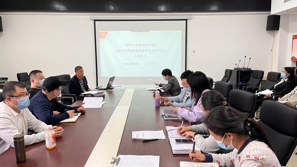 412日下午,商务与管理学院在党员活动室SY5420召开政治理论专题学习会,集中学习习近平在省部级主要领导干部学习贯彻党的十九届六中全会精神专题研讨班开班式上的重要讲话、党的十八大以来习近平总书记关于体育的重要论述、《黄河水利职业技术学院开展郑州“7·20”特大暴雨灾害追责问责案件以案促改工作方案》、《黄河水利职业技术学院汛前安全风险隐患排查整治活动方案》等重要讲话和精神。全体教职工参加会议。会议由党总支书记樊建科主持。