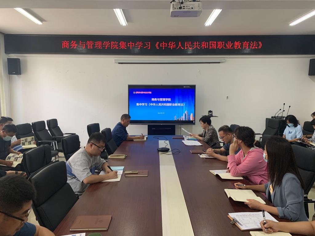 9月20日下午,商务与管理学院在党员活动室SY5420集中学习新修订的《中华人民共和国职业教育法》,全体教职工参加会议,会议由党总支书记樊建科主持。