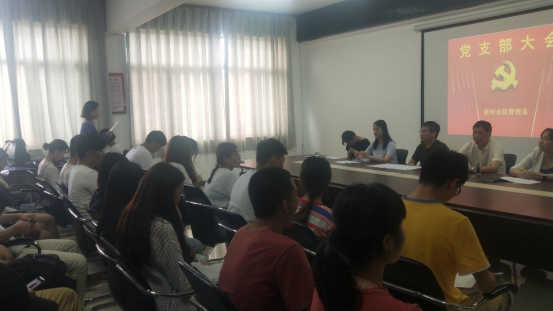 2018年6月8日,管理系学生党支部在实训楼5420召开学生党员转正大会,系党总支书记罗朝峰、副书记邹新忠及学生支部支委成员出席大会,管理系学生党支部所有学生党员及发展对象参会,会议由学生支部书记牛钰主持。