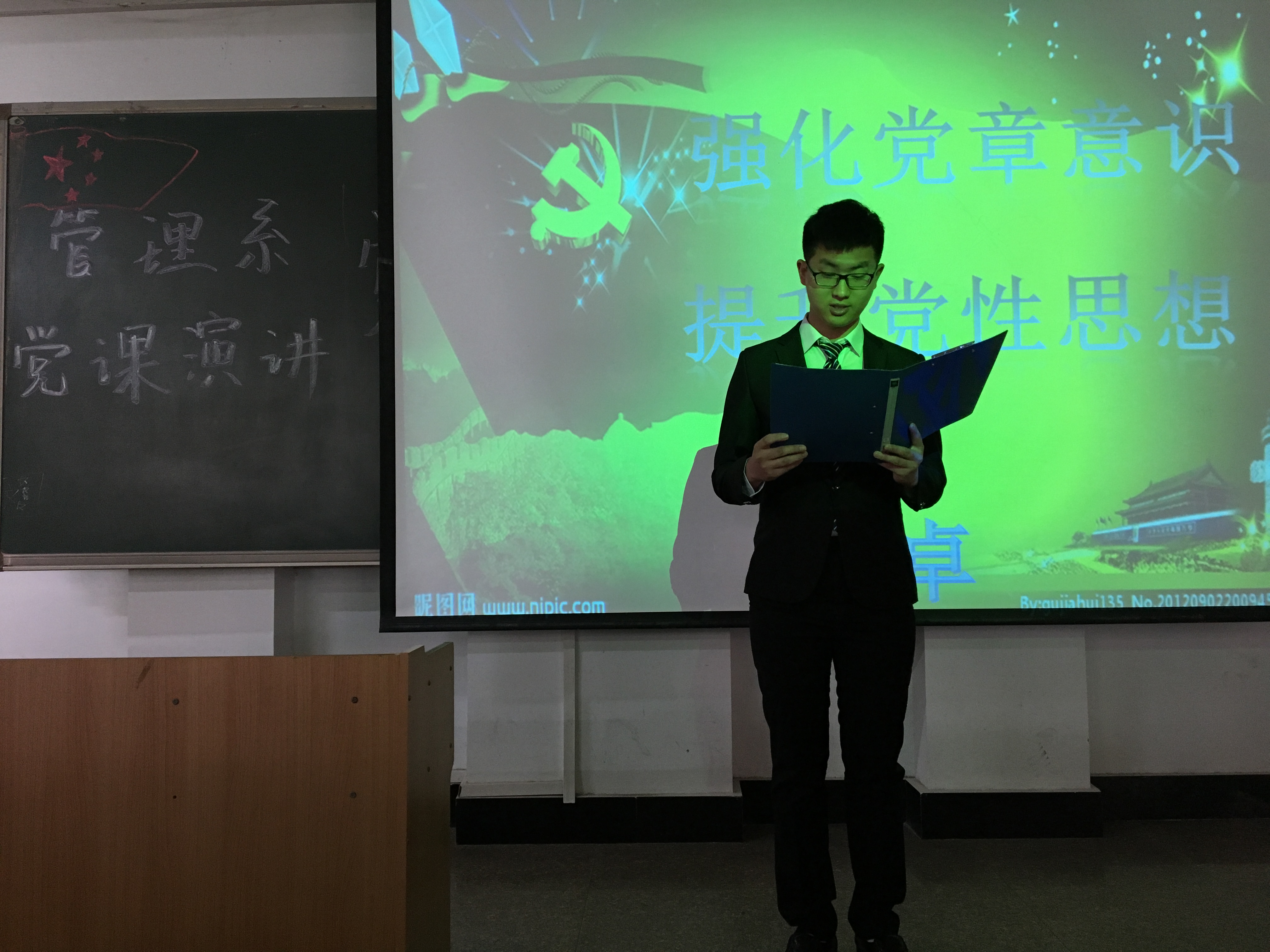 5月6日,为了加强党性修养,引导广大入党积极分子发扬勇担当、勤作为的精神,管理系在JX2202举办了第四十一期党课演讲比赛。学生支部书记牛钰老师和2016级辅导员贺若冰老师、及管理系学生分会主席团成员及部分部室负责人担任本次比赛的评委。