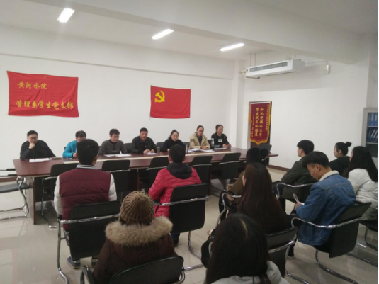 12月26日,管理系学生党支部的全体党员,在SY5420集中学习了全国高校思想政治工作会议精神。