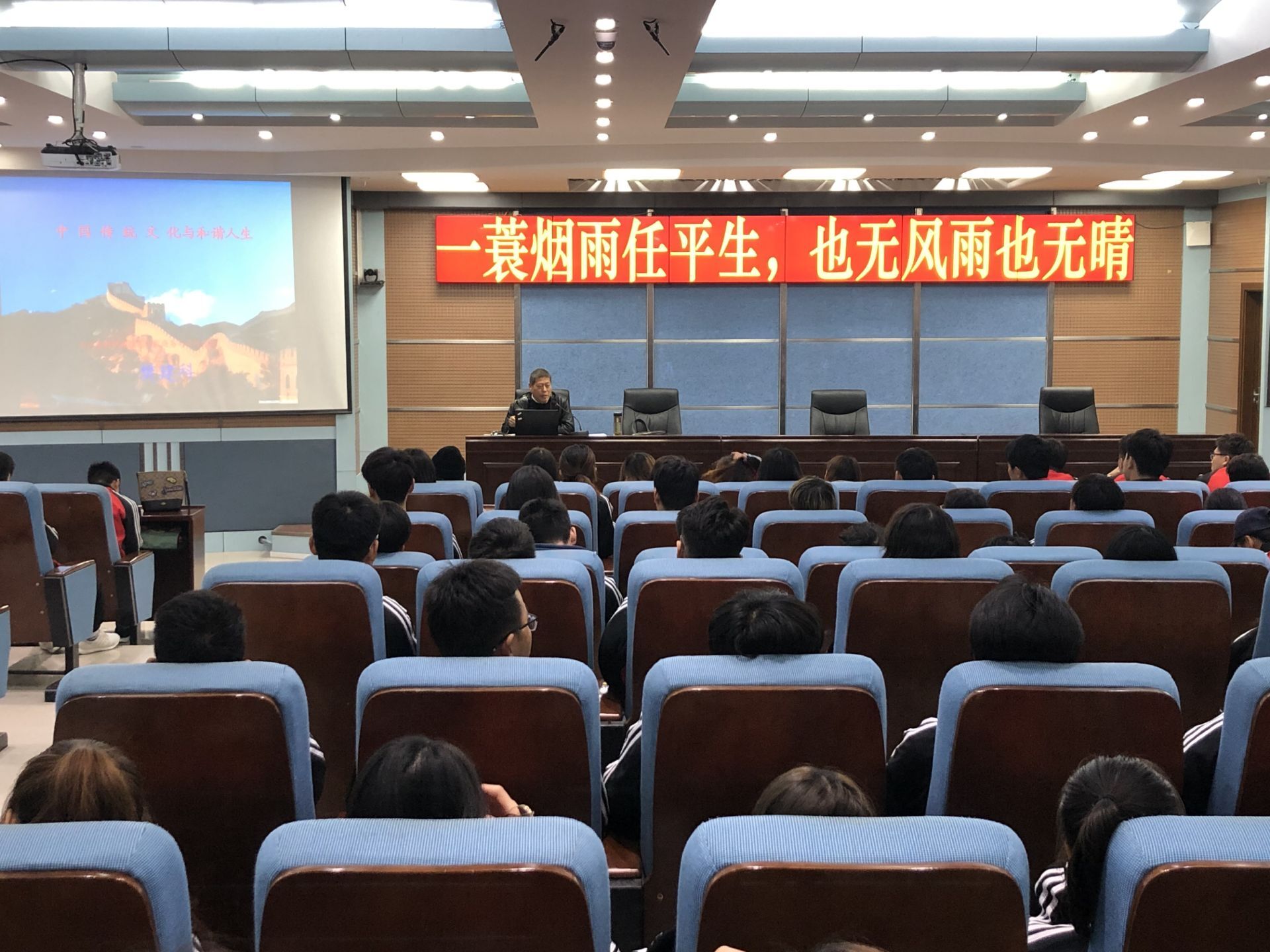 为引导同学们建立乐观向上、积极自信的良好心态,更加充实地度过学校生活,2019年11月23日上午9时,商务与管理学院全体同学齐聚三号实训楼水利报告厅,共同倾听了一堂由商务与管理学院党总支书记樊建科老师主讲的,主题为“一蓑烟雨,笑对人生”的主题讲座。