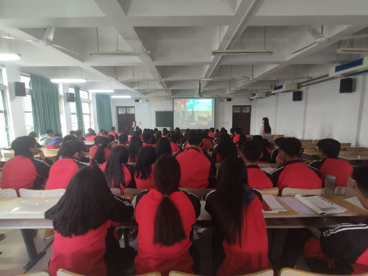 为庆祝伟大祖国70华诞,弘扬爱国主义精神,2019年10月20日下午1点,在教学楼6202,商务与管理学院分团委组织第45、46期入党积极分子观看大型思政纪录片《我们走在大路上》。