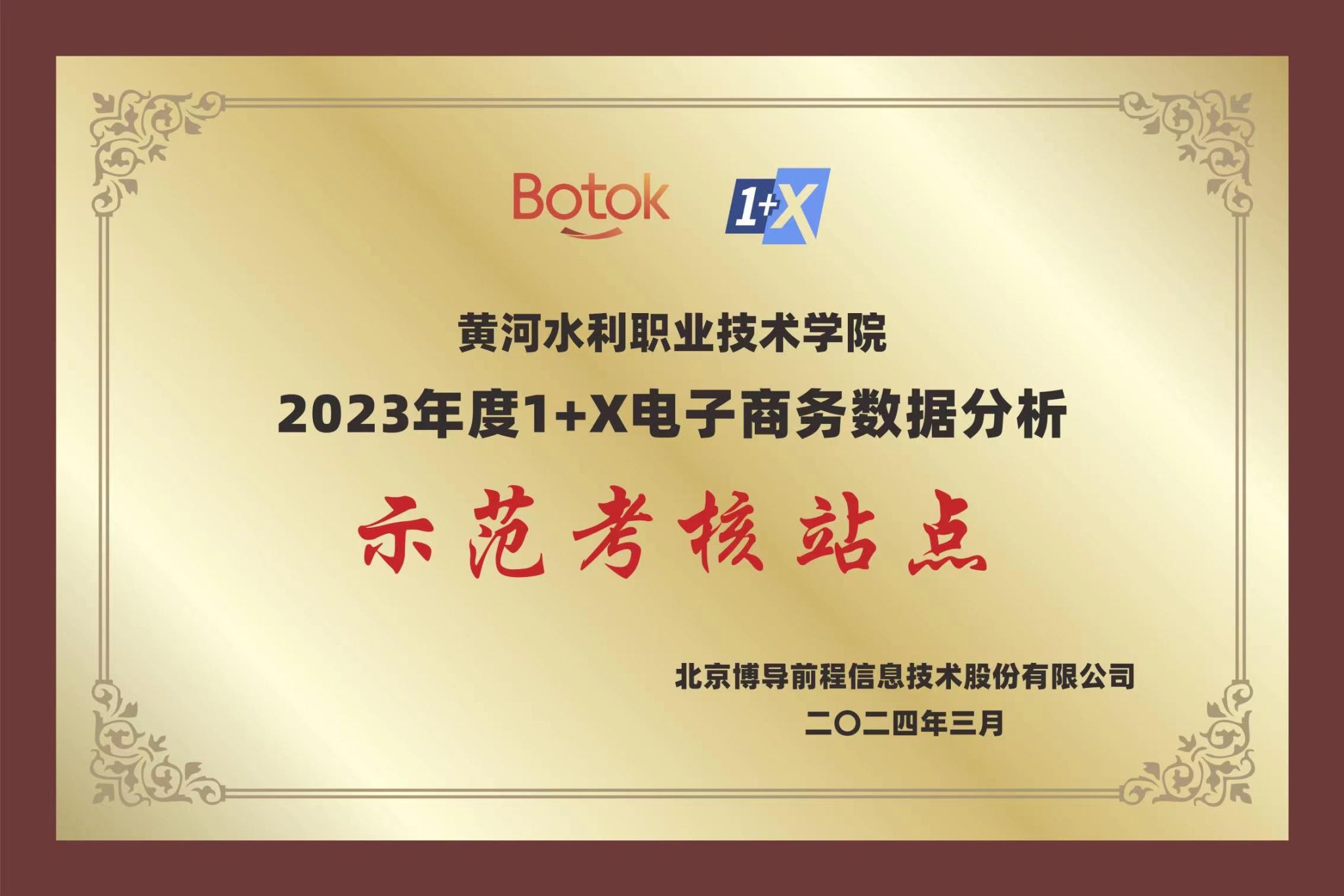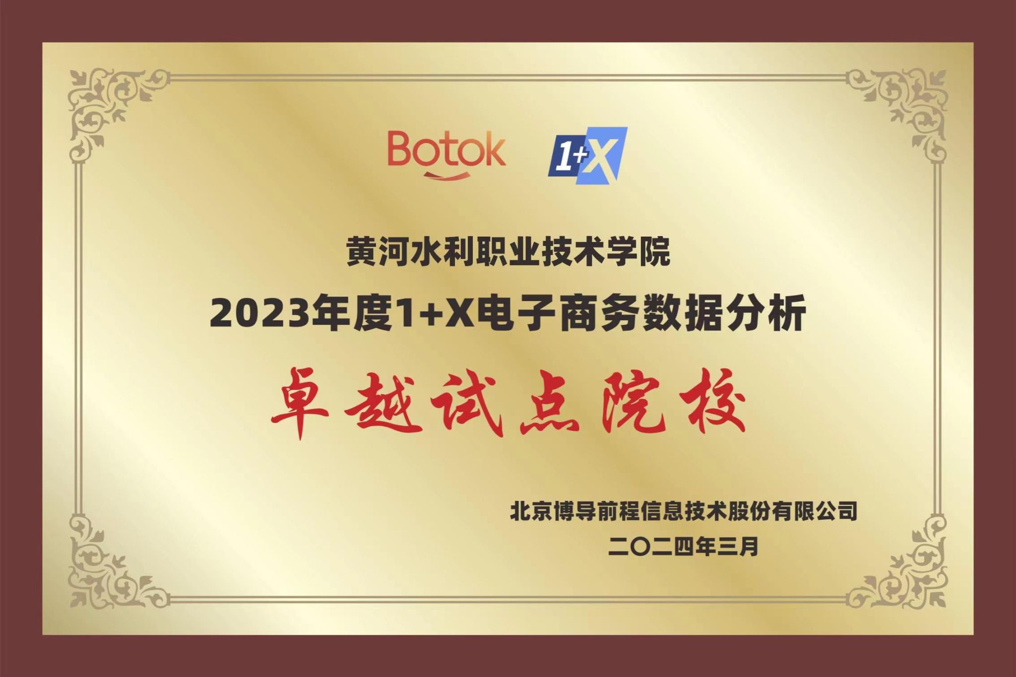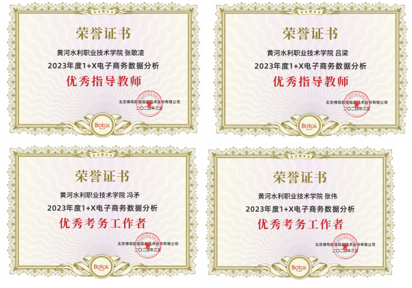 320日,由北京博导前程信息技术股份有限公司主办的2023年度电子商务数据分析1+X证书试点工作表彰会在线上召开。本次会议总结了2023年度1+X电子商务数据分析和农产品电商运营职业技能等级证书试点工作开展情况。其中,我校被评为2023年度“1+X电子商务数据分析卓越试点院校”和“1+X电子商务数据分析示范考核站点”,吕梁、张歌凌分别被授予“优秀指导教师”,张伟、冯矛分别被授予“优秀考务工作者”荣誉称号。