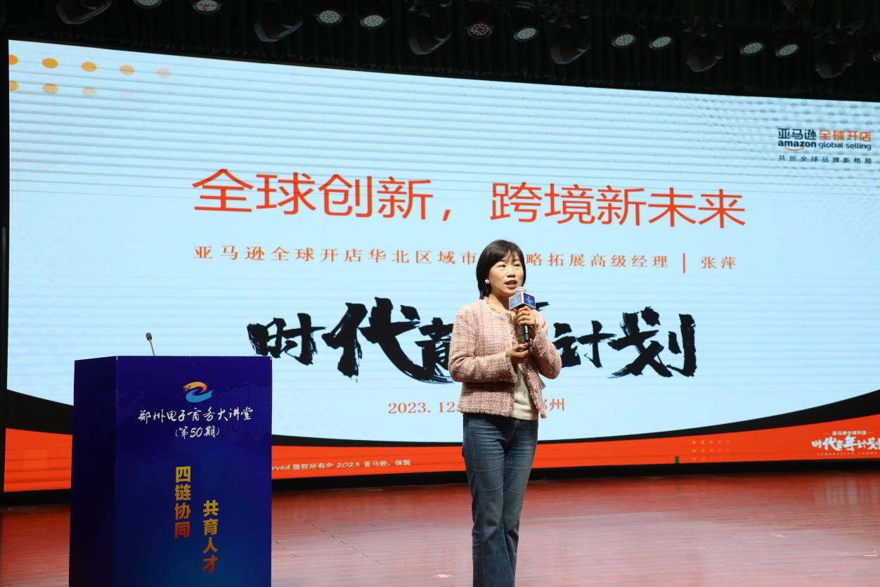 大讲堂特邀浙江工商大学管理工程与电子商务学院院长厉小军教授、亚马逊全球开店华北区域市场战略拓展高级经理张萍、郑州宏鑫橡胶制品有限公司总经理杜锦雨、河南经贸职业学院商务学院院长王丽丽等专家,分别从跨境电商发展现状、打造企业品牌出海、高校人才培养实践、产教融合等方面进行深度研讨和经验分享。