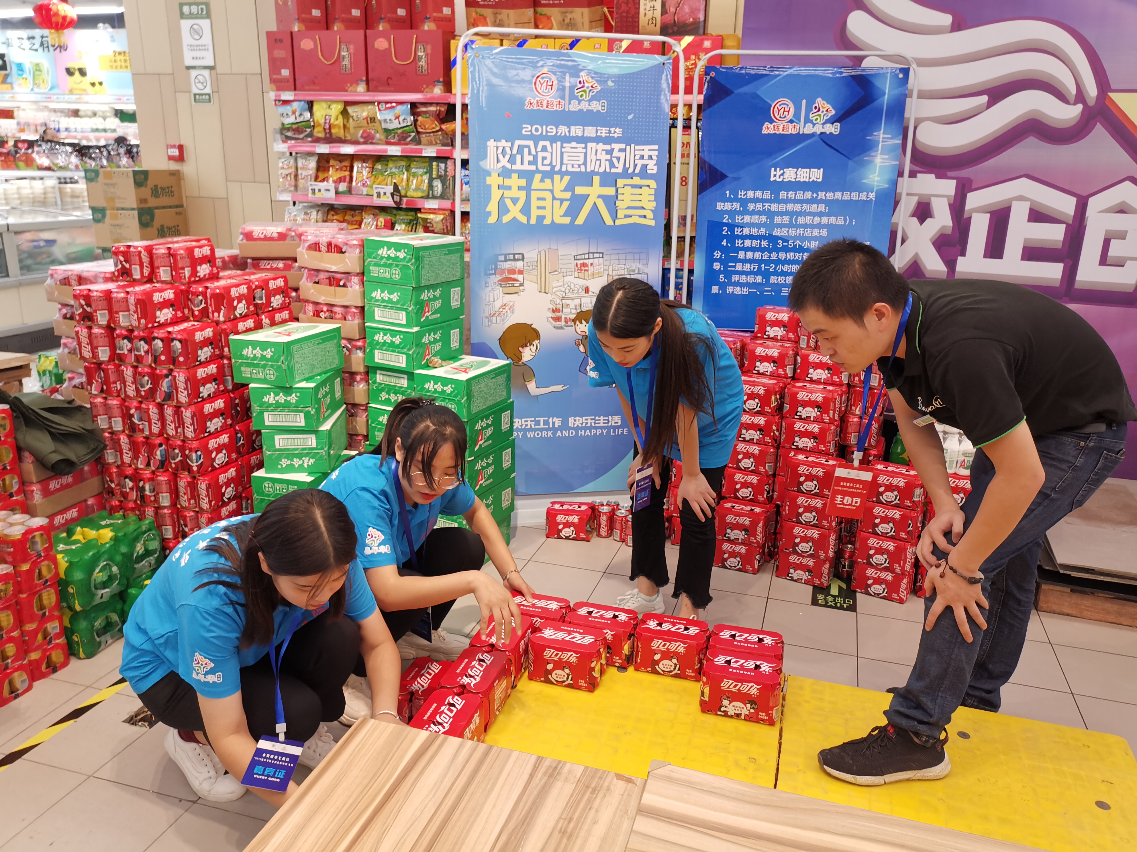 2019年9月29日,朱汝瑶、王丽、张艳等我院场营销营销专业18级学生,参与河南永辉超市举办的“2019嘉年华 校企创意陈列达人秀活动”。
