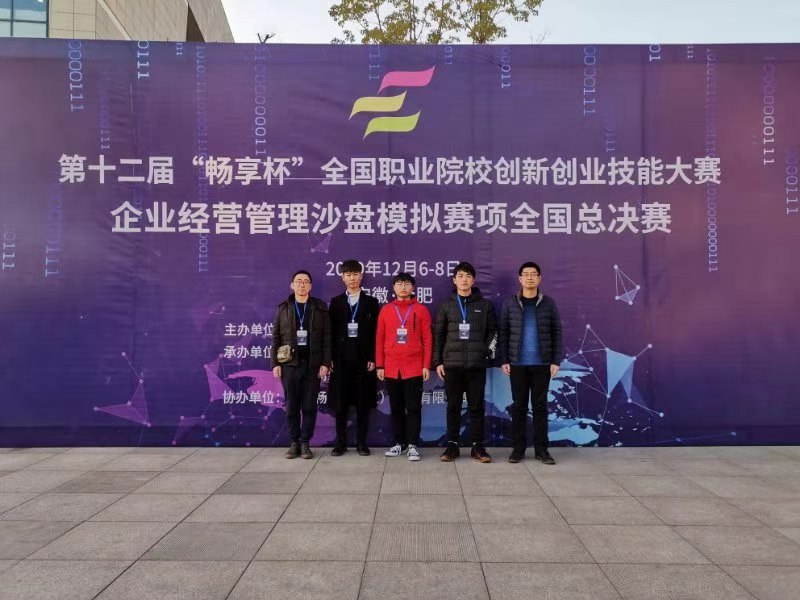 2019年12月7日,我院市场营销专业18级学生庞久龙、杨晨和吕福伦在程云翔、聂帅老师的带领下来到合肥市,参加由中国职业技术教育学会主办,合肥财经职业学院承办的第十二届“中教杯”全国大学生创新创业大赛企业经营管理沙盘全国总决赛。本届比赛共有来自全国各地的126支代表队伍参赛。经过7个小时的激烈角逐,我院代表队获得全国大赛二等奖。