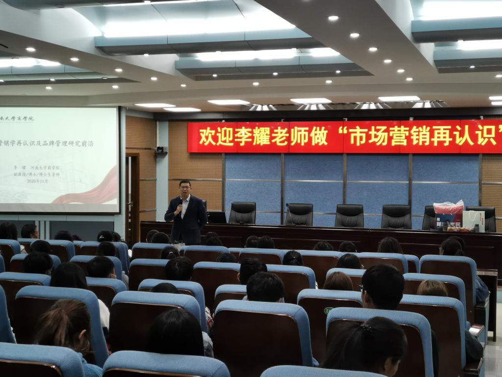 2020年11月3日上午,商务与管理学院邀请河南大学商学院副教授、博士生导师李耀,在我校3号实训楼学术报告厅为市场营销专业学生做“市场营销再认知”的专题讲座。