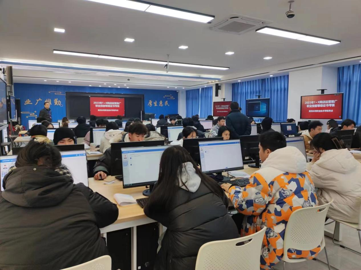 20231230日上午,黄河水利职业技术学院商务与管理学院2022级电子商务专业、跨境电商专业,共计115名学生走进考场,参加1+X网店运营推广职业技能等级(中级)考试。