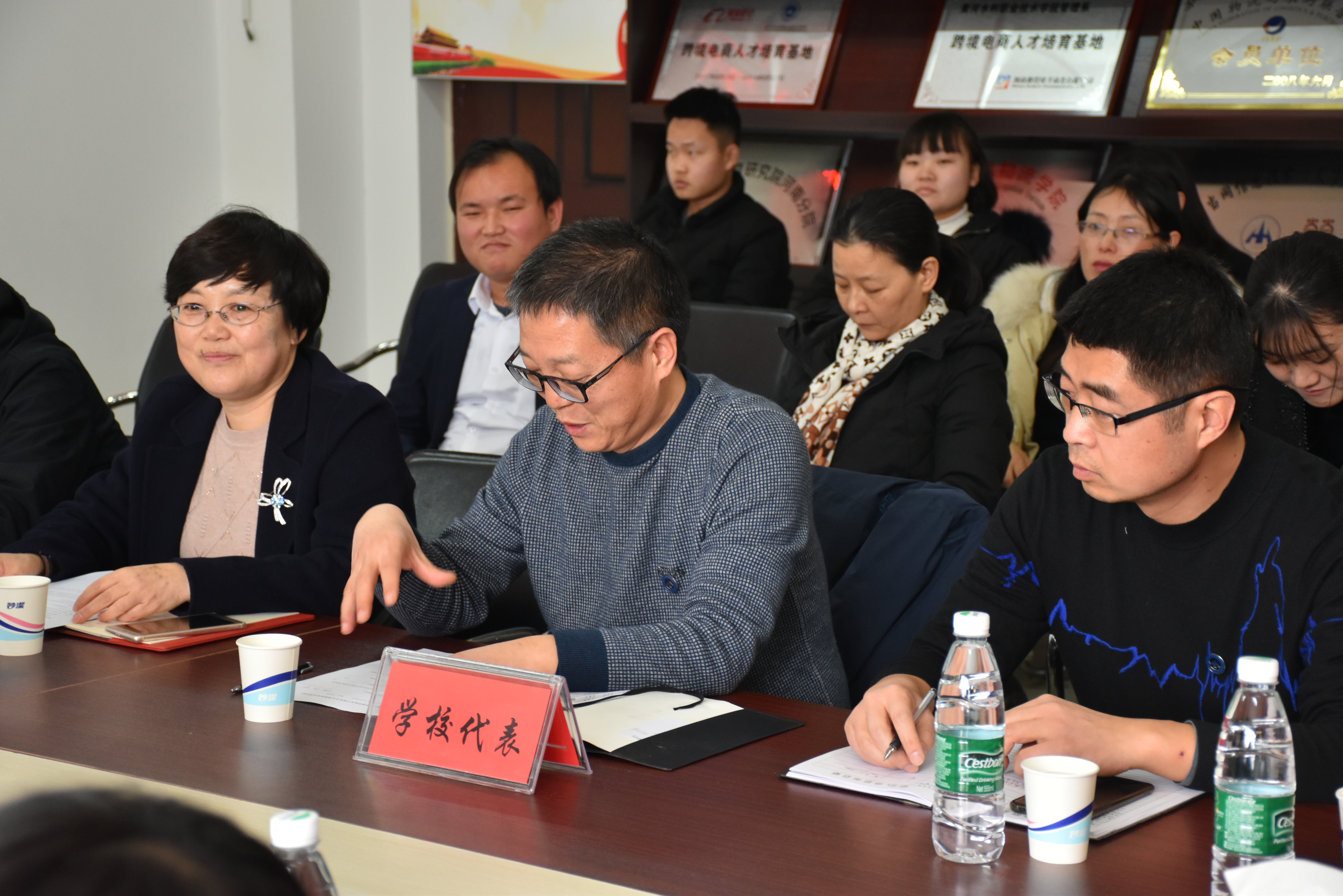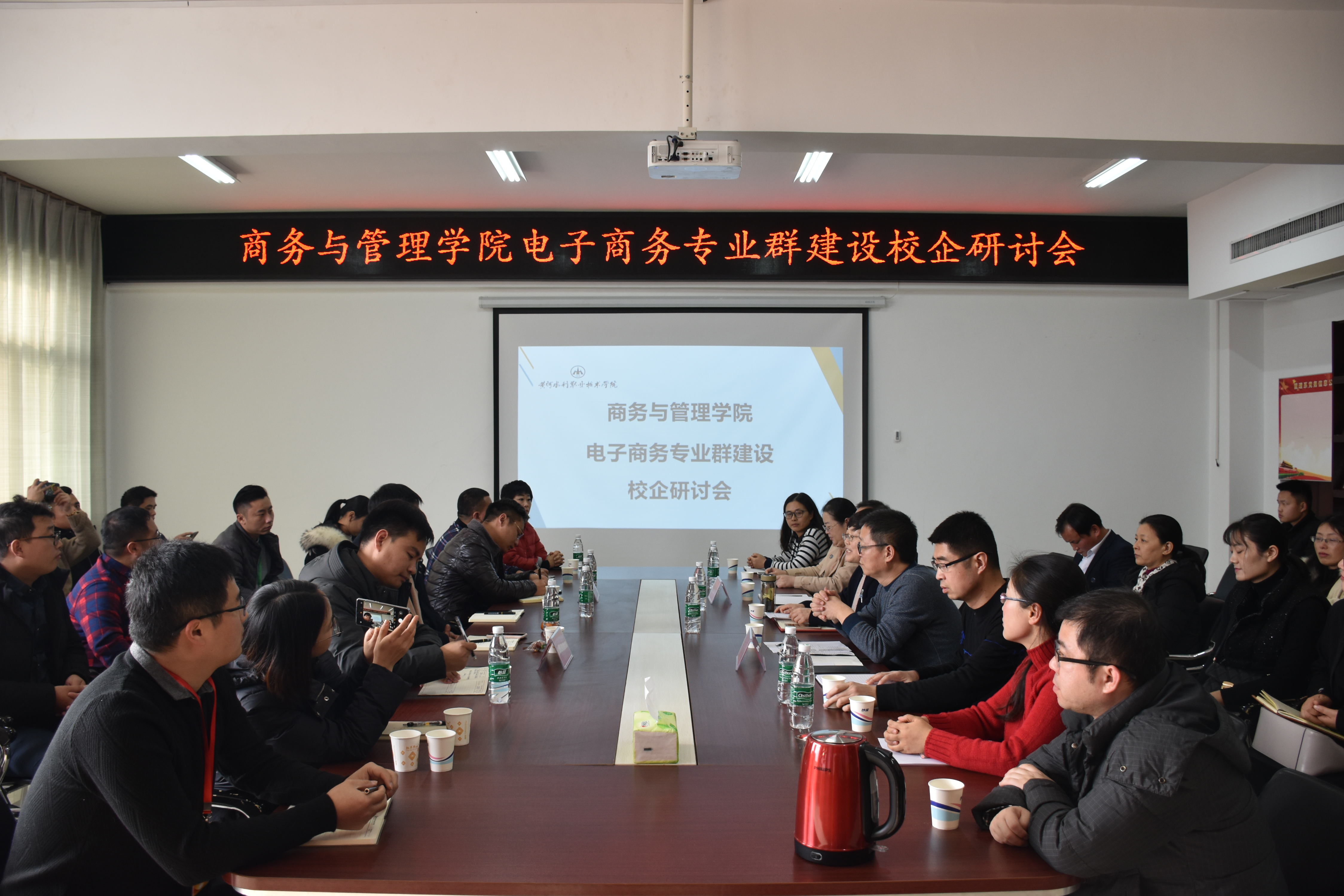 为进一步加强校企深度合作,推动电子商务专业群高质量发展,12月21日下午,商务与管理学院邀请来我校参加校庆的部分企业在SY5420召开了电子商务专业群建设校企研讨会。江苏京东信息技术有限公司、中教畅享(北京)科技有限公司、郑州京慧越科技有限公司、河南澳得电子商务有限公司、当当网信息技术(天津)有限公司、永辉超市股份有限公司、上海德邦物流股份有限公司、河南顺丰速运有限公司、河南万宝股份有限公司等十几家知名企业代表受邀出席了研讨会。学校教务处处长薛建荣、商务与管理学院院长周爱荣、副院长吕梁、各专业教研室主任及教师代表、学生代表参加了会议。研讨会由周爱荣主持。