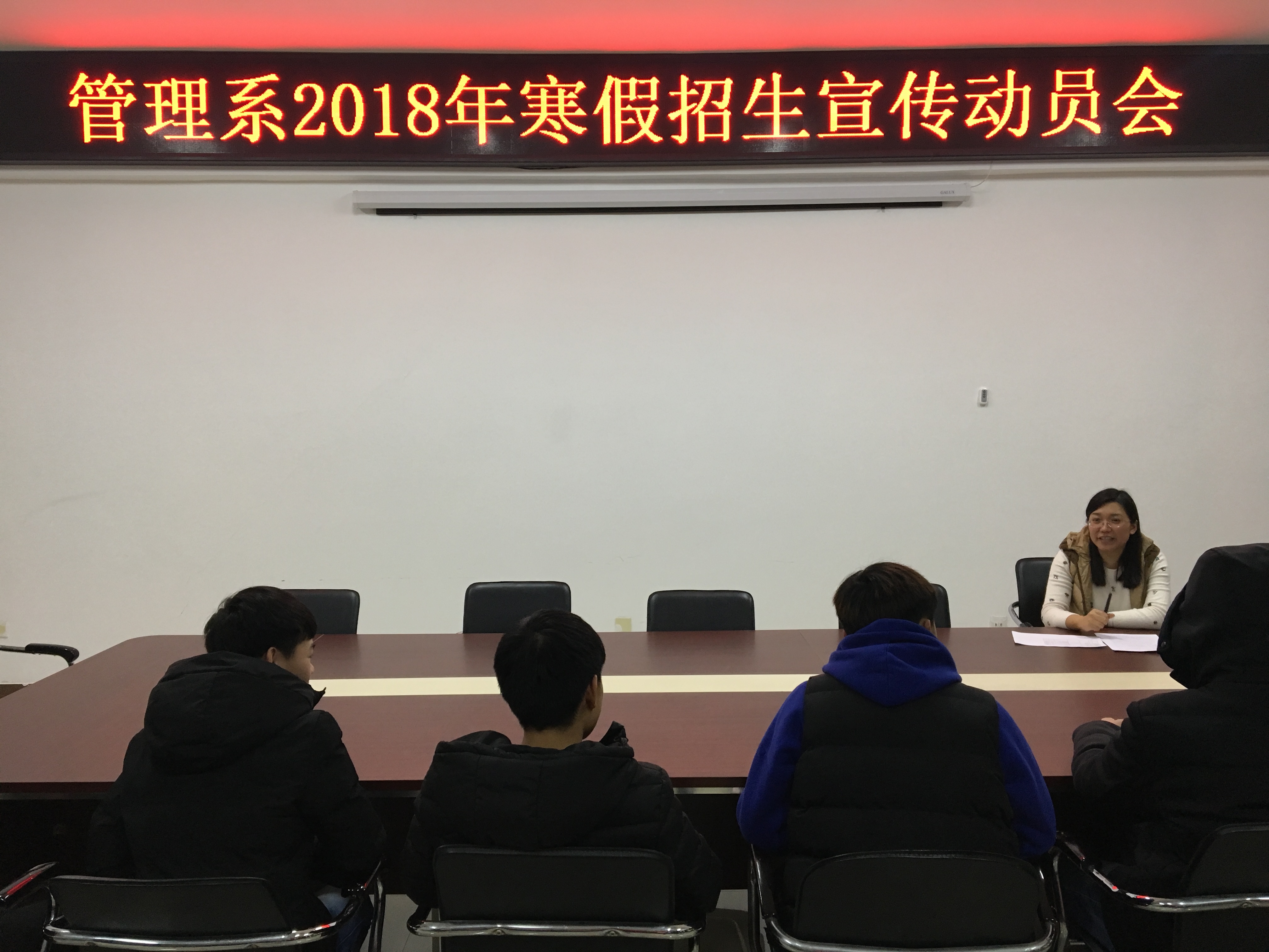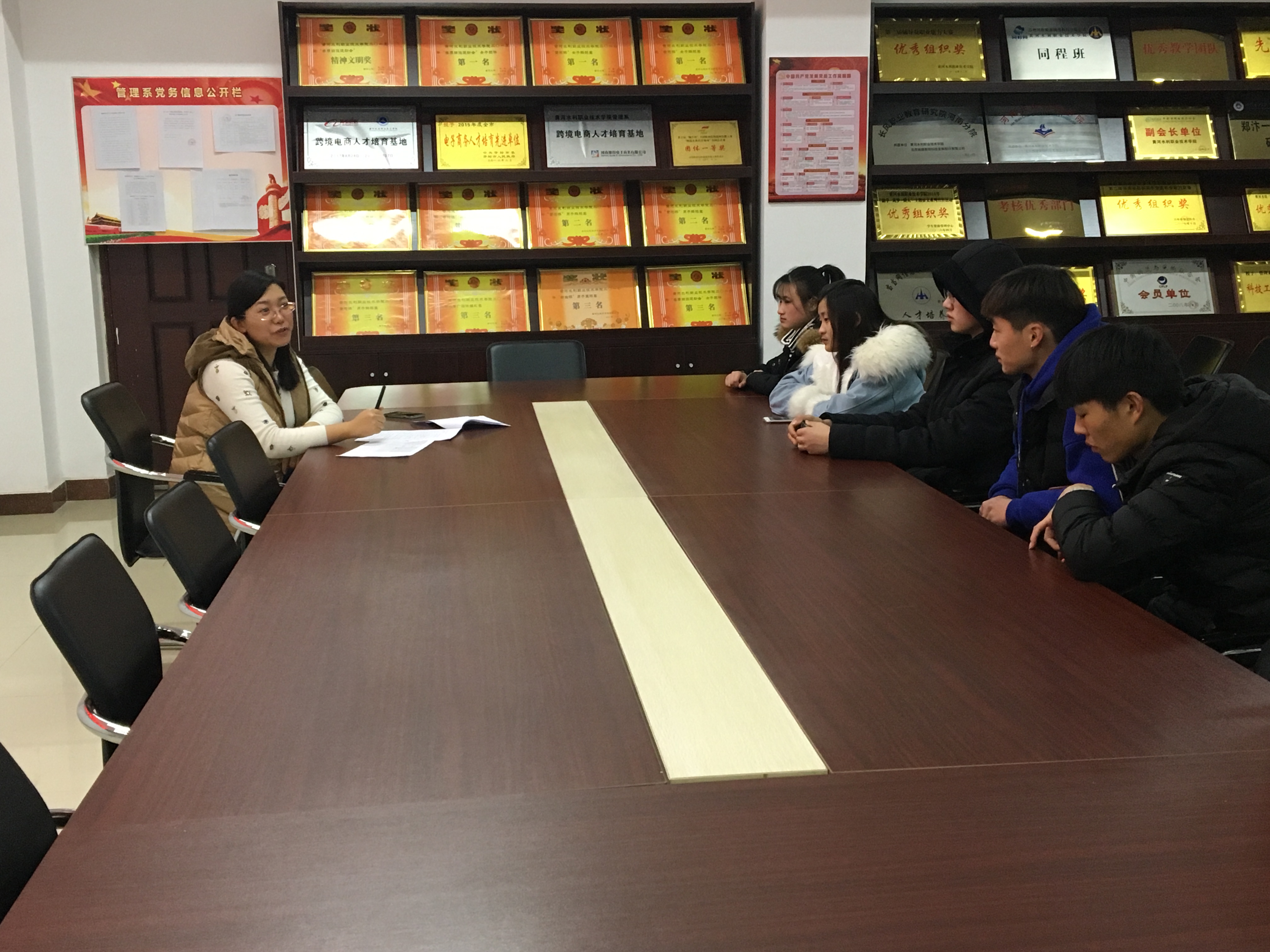 为切实做好2018年招生宣传工作,使参与招生宣传的学生明确自己的任务,激发学生的使命感和责任心,1月17日下午,我系组织精心挑选的6名信阳籍学生召开寒假招生宣传第二次动员大会,会上系行政办主任尹友老师为参加招生社会实践的学生介绍了我校的情况、招生区域情况,并对学生进行了宣传内容和宣传方式、方法的指导。与会学生纷纷表达了对学校的热爱和对学校工作的支持,表示争取圆满完成寒假招生宣传的社会实践任务。