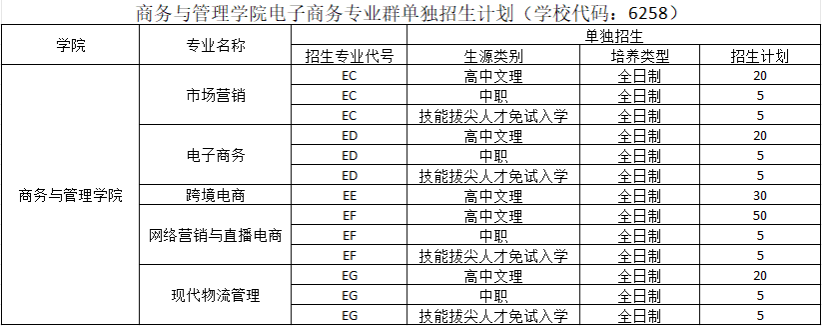 2024年电子商务专业群单独招生计划