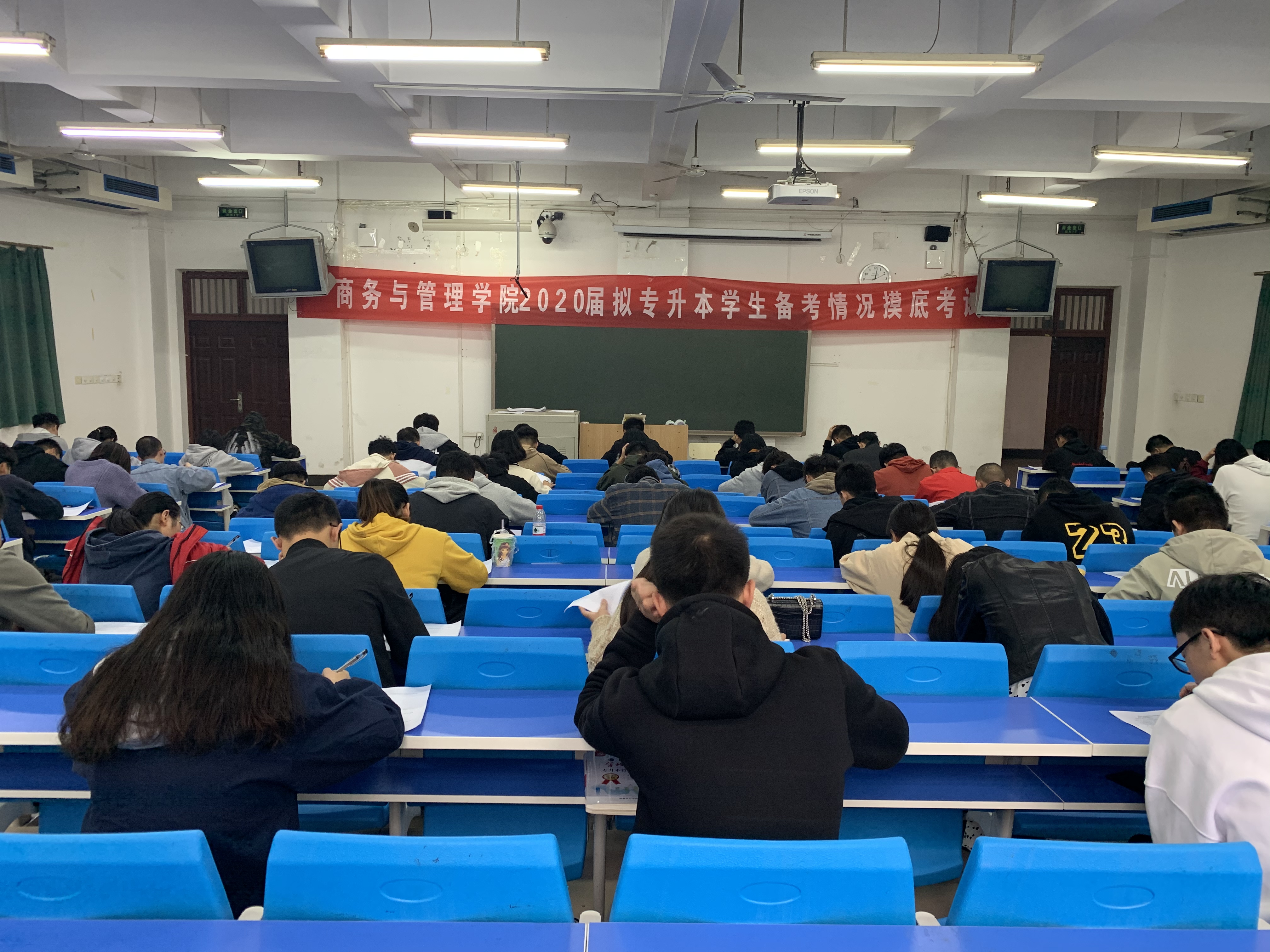 做好专升本学生的指导和服务工作是开展就业工作的重要组成部分。商务与管理学院2020届拟专升本同学备考情况摸底考试于2019年11月3日上午在教学楼2102举行,学院党总支樊建科同志进行了备考动员讲话,全体2020届拟专升本同学参加了此次考试。