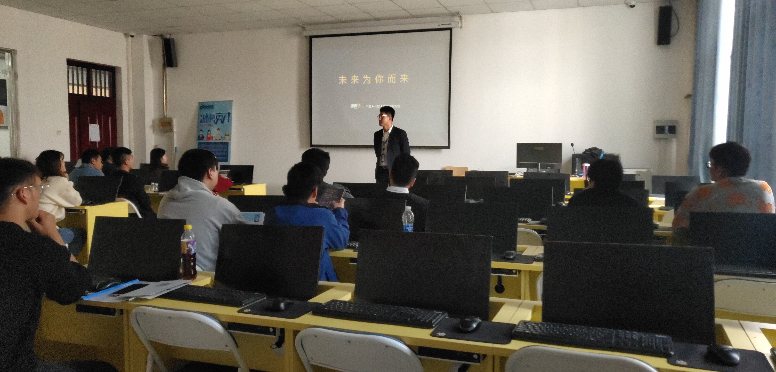 2019年10月17日上午,焦作瑞福莱反光材料有限公司在实训楼8412教室举行专场招聘会,现场有20名学生提交个人简历并参加面试。