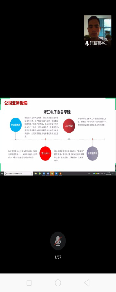 2020年6月24日下午三点到六点,浙江智谷电子商务有限公司以腾讯会议的方式,在线进行了校园招聘宣讲会,来自电子商务18级、跨境电商18级和网络营销18级的200多名学生,参加了此次宣讲会。