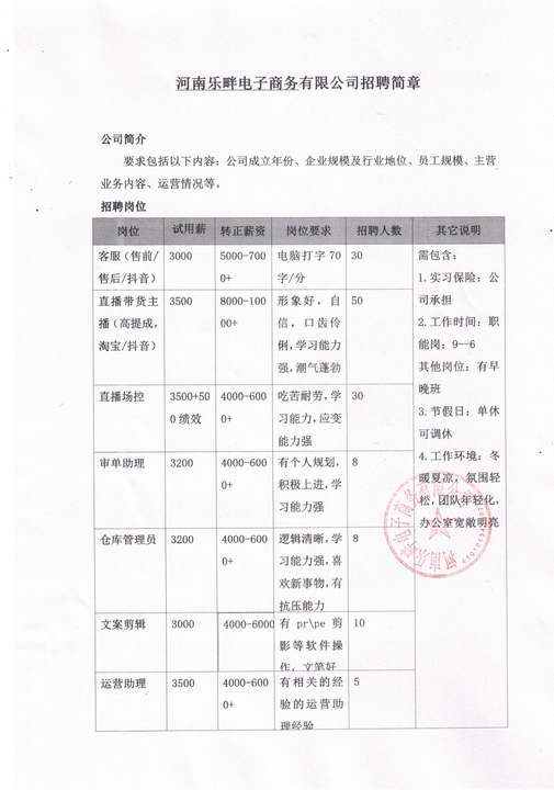 河南乐畔电子商务有限公司招聘