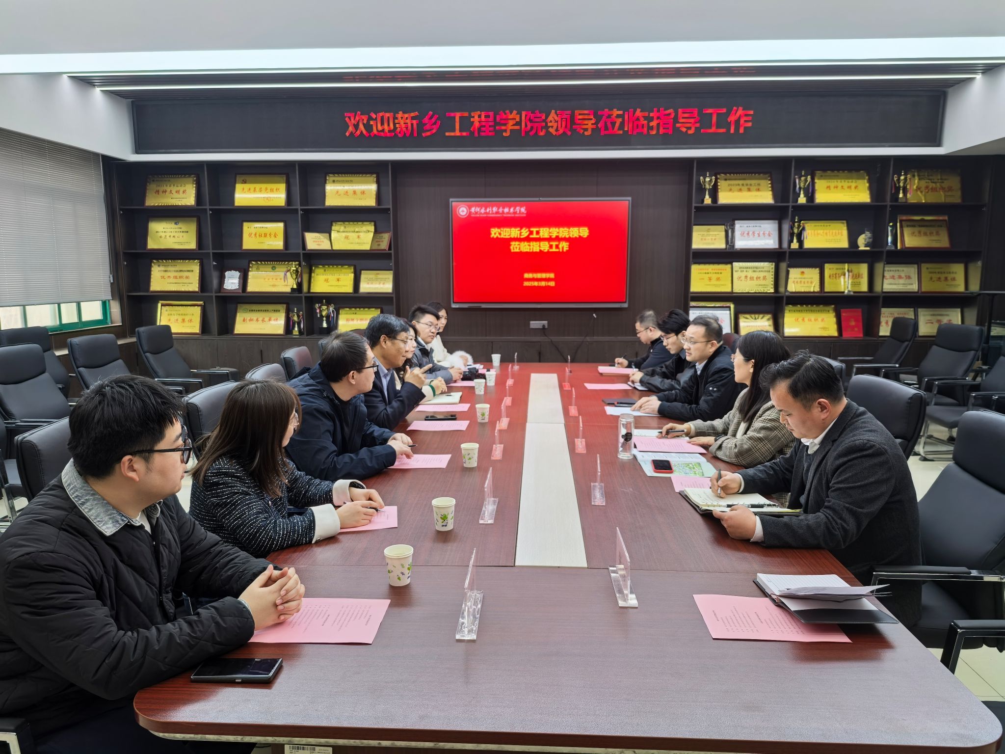 314日,新乡工程学院经济与管理学院院长任太增、副院长赵蓓等一行7人来我院调研交流校企合作生产实践项目运行、产教融合、人才培养方案等。我院院长吕梁,副院长尹友及相关部门负责人热情接待了来访客人。
