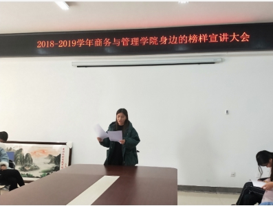 为弘扬社会主义先进文化、宣传优秀大学生先进典型事迹、引导大学生崇尚典型。12月14日,商务与管理学院在党员活动室举办了身边的榜样宣讲活动。教工支部和商务管理学院学生。共计50余人参与了本次活动。