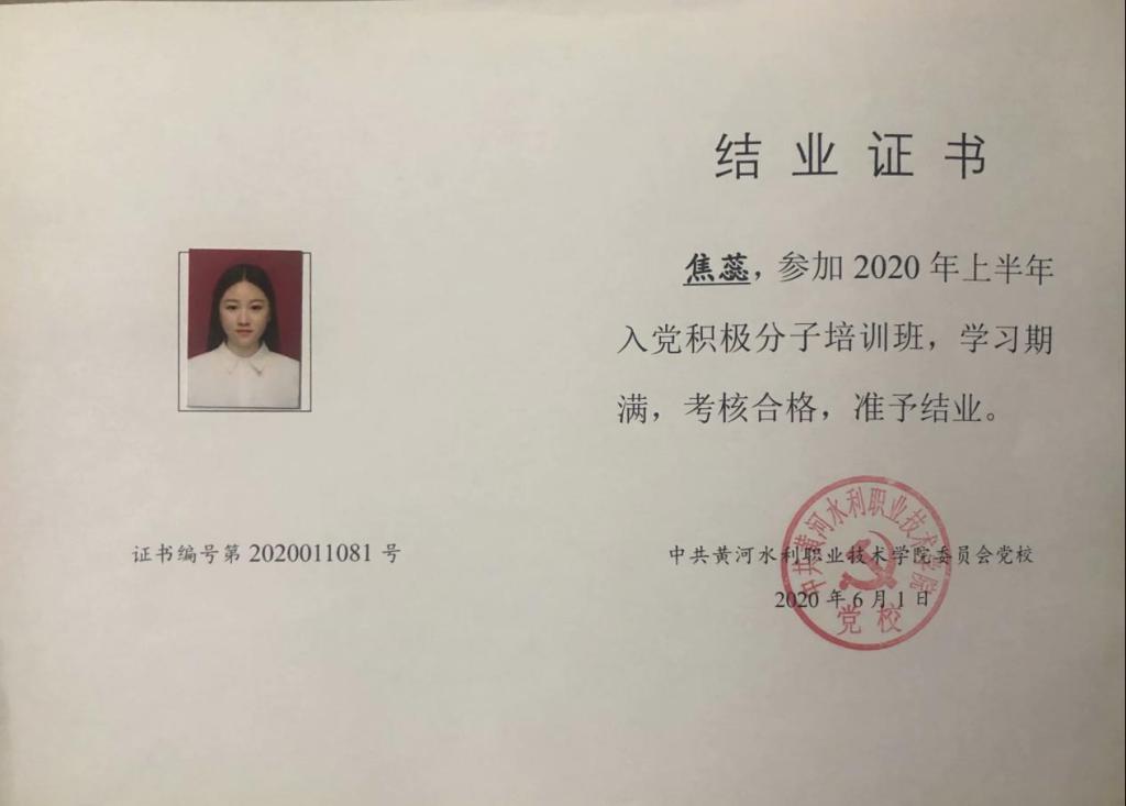 作为一名基层团支部书记,焦蕊同学在思想上,迫切想要加入中国共产党,积极向党组织靠拢,严格遵守学校的各项规章制度。通过阅读教育读本,收看优秀党员先进事迹等途径来提高自身的思想水平,不断提高政治素养。积极参加各项活动,脚踏实地的认真学习,在思想、学习、生活、个人实践等方面取得了优秀的成果,得到了很大的锻炼与提升,2020年4月有幸发展成为入党积极分子,参加团校、党校学习。