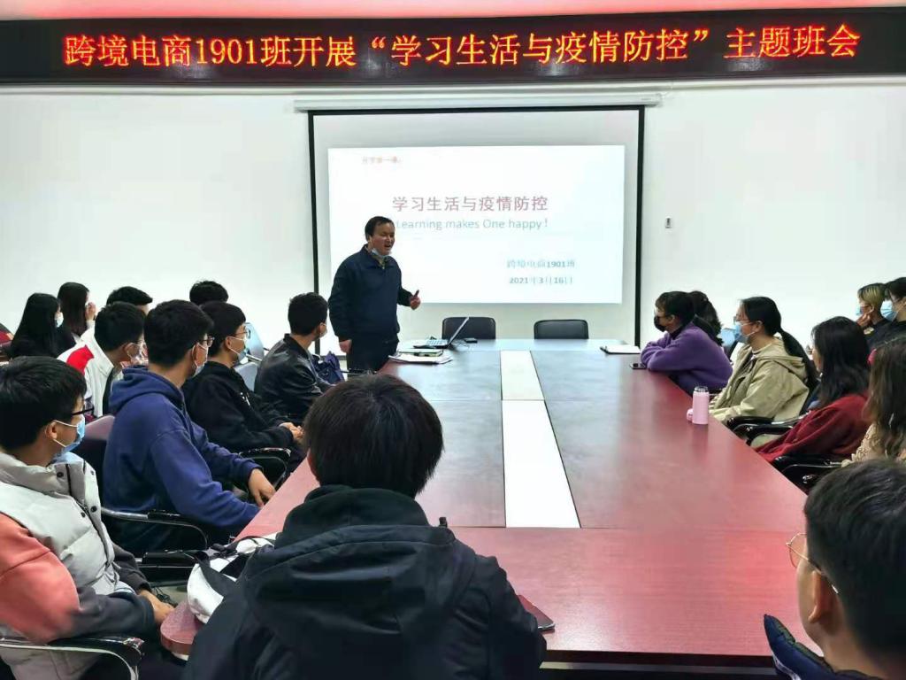 3162019级辅导员陈永胜组织跨境电商1901班全体同学在SY5420,召开了以“学习生活与疫情防控”为主题的开学第一课。陈老师说,作为新时代大学生,要不忘初心、牢记使命,积极向党组织靠拢,要不断学习党的先进思想,拥护中国共产党的领导,自强不息、不负韶华,培养高尚的道德情操,争取早日入团、入党。鼓励同学们要利用课余时间,多关注时政新闻、多了解民生动态,特别是要积极学习领会十九大以来党的会议精神等。在学习方面,陈老师结合跨境电商专业特点,既要熟练学习掌握跨境电商的核心专业课,如跨境电商B2B/B2C实务、网页美工设计等,也要努力学习外语课,鼓励同学们不断加强英语口语练习,积极参加全国英语四、六级考试。同时,陈老师提醒同学们,大学期间可以主动报名参加各类专业技能竞赛,如POCIB、三创赛、挑战杯等,并考取一些专业证书,如“1+X”网店推广、电子商务数据分析等。生活方面,陈老师强调同学们在生活中一定要遵守校规校纪,如校园禁烟、整理宿舍内务、切勿晚归等。涉及身体健康安全,叮嘱同学们重视食品安全,尽量不点外卖;合理作息、锻炼身体,保持良好的生活习惯。涉及财产安全,告知同学们要防范网络诈骗,不贪图小便宜、不随意泄露个人信息;理性消费,不超前消费,培养良好的勤俭节约习惯。在疫情防控方面,陈老师告诉同学们既要遵行学校的各项疫情防控部署,又要以积极的心态坚持每天登记打卡,报备自己的身体健康状况,同学们一旦身体出现发热、感冒等不适现象要第一时间告知老师,并及时就诊治疗。同时,要求同学们在疫情防控期间一定要“不招谣、不传谣、不信谣”。