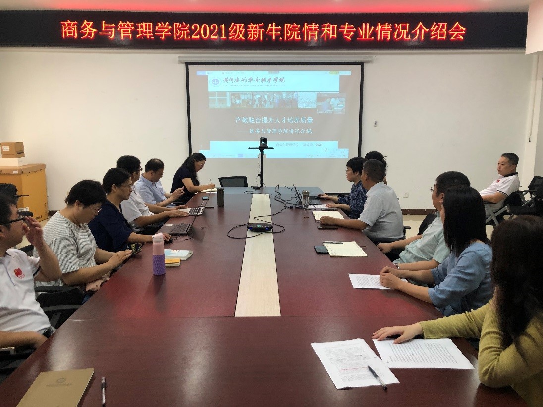 金秋时节,硕果累累,为帮助2021新同学适应大学学习生活环境,结合入学教育和新冠肺炎疫情常态化防控形势及有关精神要求,9月14日上午,商务与管理学院以直播的方式召开了2021级新生线上学院院情介绍会。学院领导班子、科级干部、教研室主任、骨干教师和全体辅导员在学院党员活动室参加了会议,会议由分团委书记牛钰主持。