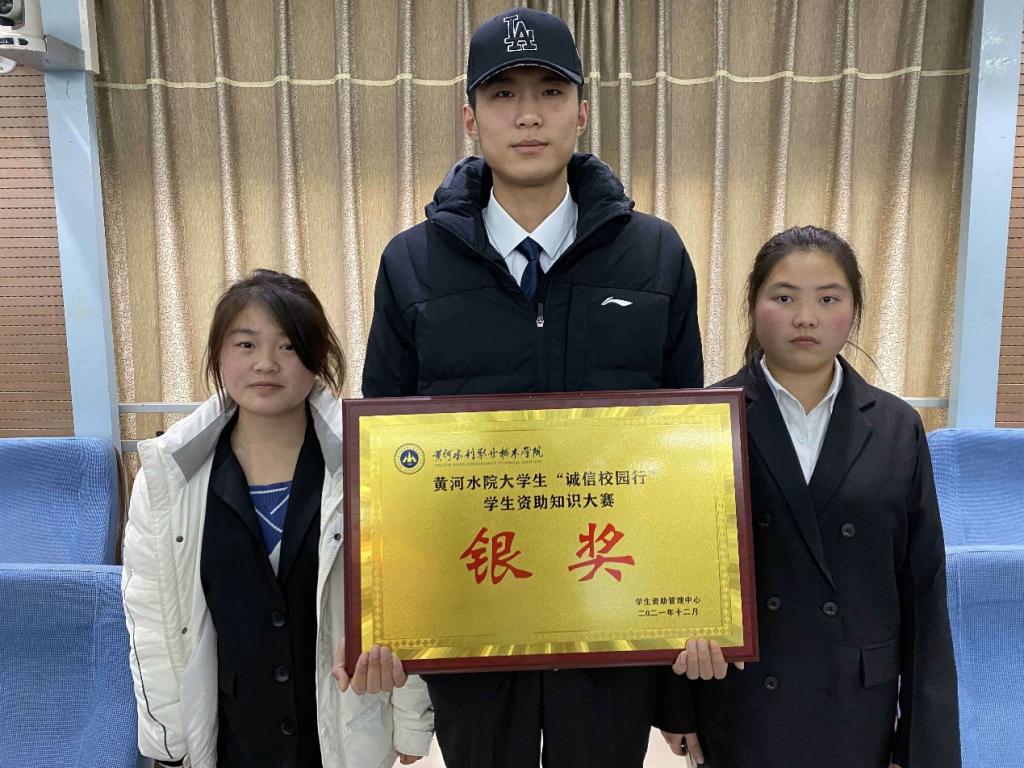 为丰富同学们的业余生活,培养大学生的诚信意识和观念,进一步促进诚信校园建设等相关内容;激励同学们坚持正面宣传引导,弘扬社会主旋律,提高学生文明素养,营造诚实守信的良好风尚,黄河水利职业技术学院于2021年12月17日,在水利报告厅举行大学生“诚信校园行”资助知识大赛。商务与管理学院在本次比赛发挥出色,获得了银奖。