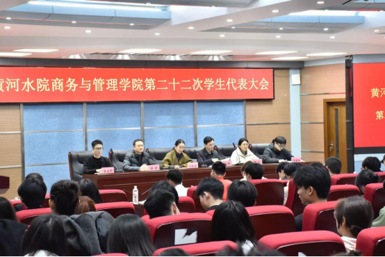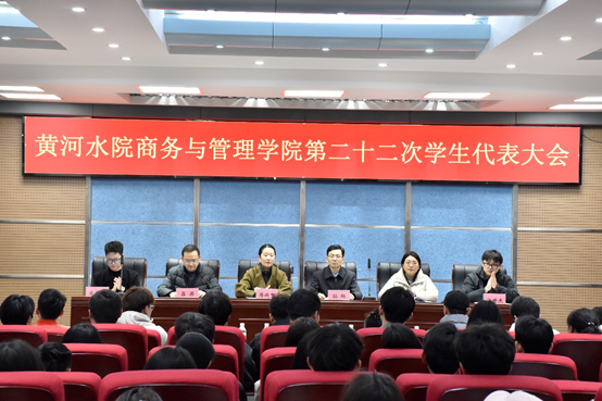 时序更迭,新篇再启。2024年3月8日下午,商务与管理学院第二十二次学生代表大会在三号实训馆学术报告厅隆重举行。校团委副书记蒋晓絮、商务与管理学院党总支书记孙辉、院长吕梁、副院长尹友、分团委书记肖星野及各级辅导员出席会议,169名学生代表齐聚一堂,共商学院学生工作发展大计。