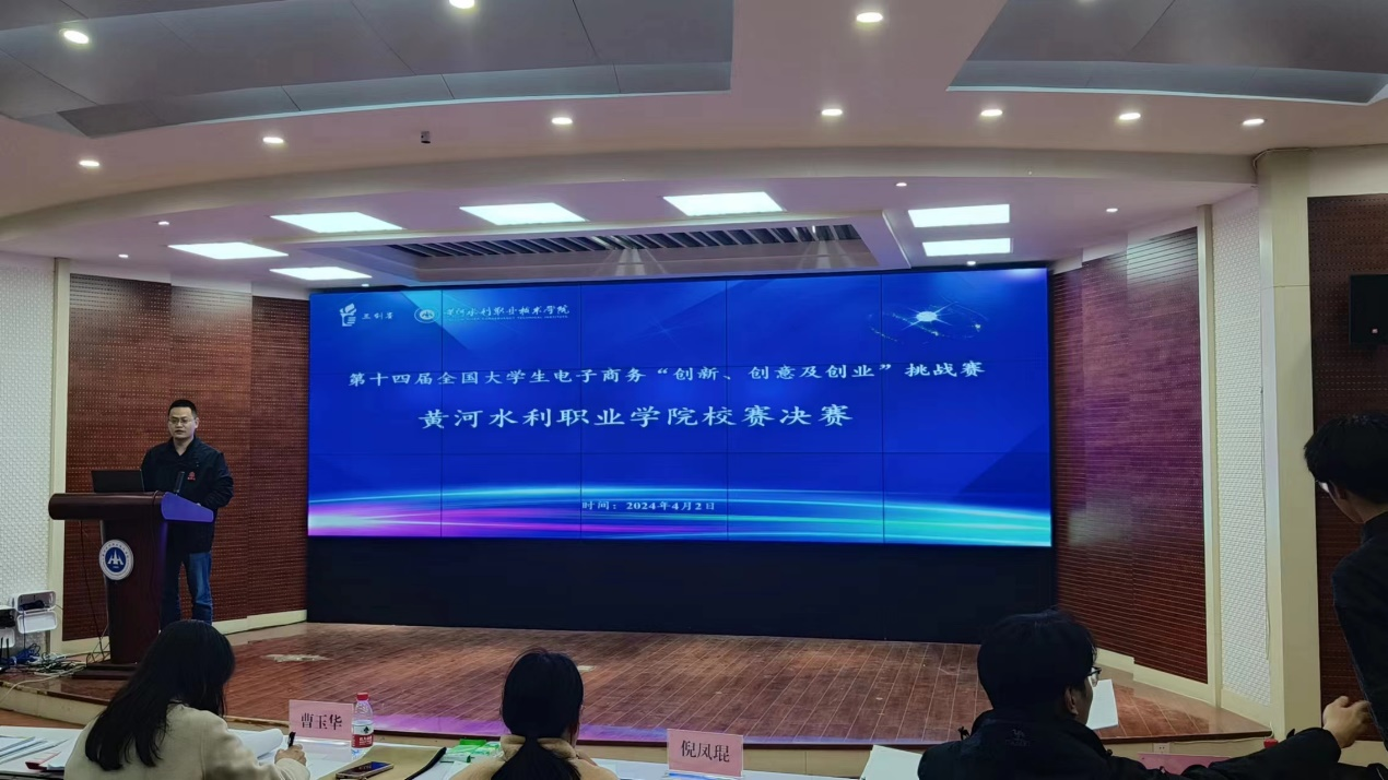 2024年4月2日上午,由全国电子商务创新产教联盟主办、黄河水利职业技术学院创新创业学院承办、商务与管理学院协办的全国大学生电子商务“创新、创意及创业”挑战赛-黄河水利职业学院校赛决赛在SY4428演播厅成功举行。我校创新创业学院院长薛冰、商务与管理学院院长吕梁莅临现场指导,武汉惠赠你网络科技有限公司总经理游学超、北京新大陆时代科技有限公司技术总监耿天霞及多名校内评为专家出席并对参赛项目团队进行评审指导。