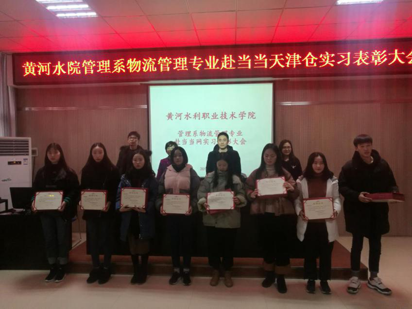 2017年12月20日,在黄河水院活动中心302室召开了黄河水院管理系物流管理专业赴当当天津仓实习表彰大会,出席本次会议的主要人员有:管理系主任周爱荣教授、物流管理教研室主任龙瑞红老师、当当网天津仓杨经理、天天劳务派遣公司阮经理、物流管理专业各位老师及物流管理专业16级同学。会议上,领导、老师对在支援当当网天津仓表现优异的同学提出了表彰,并颁发了荣誉证书和奖品。周爱荣主任对我系物流管理专业提出了高度的评价,要求同学们继续保持良好的作风,勤奋刻苦,以后我社会建设献出一份力量。