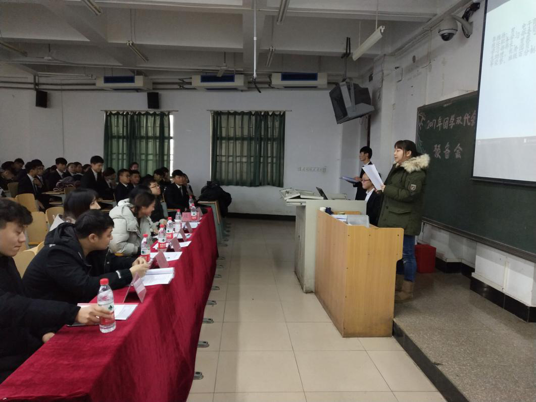 黄河水利职业技术学院管理系于2017年12月17号、举办了第十五届团学双选预备会,学代会选举在教学楼2102召开。参加本次换届选举大会的有分团委书记牛钰老师及分团委副书记胜瑞宇;15级辅导员张之峰老师,16级辅导员贺若冰及陈思老师和17级辅导员段然,朱孟昀老师。大会由32名来自班级的班长、团支书,和系领导老师参与了投票。代表选举大会由分团委书记牛钰老师主持,她先对选举的境况进行了详细的说明,并宣读了双代会代表的选举方法。投票期间,宣布了预备代表候选人名单和预备代表候选个人基本情况。牛钰老师向参加投票的同学提出,希望投票的同学履行责任,行使好手里的权利,积极配合学生会干部的工作,大会的监票人和计票人现场拆封,为投票人发放投票,选举工作紧张有序的进行着。本次换届竞选大会充分体现了系里对学生干部选拔的重视与支持,突出了选拔过程的公平、公开、公正原则,为我系培养、选拔学生干部工作积累了宝贵经验。