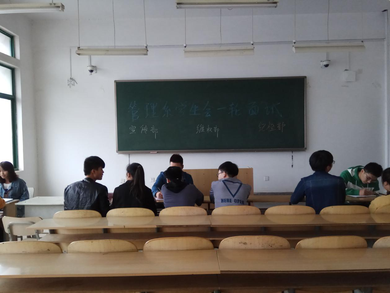 2017年10月10日下午在教学楼5517、5510、5502教室举行管理系学生会面试,面试的过程可以说是既严肃又轻松。参加面试的同学分别进行了简短而又精彩的自我介绍,或紧张,或放松,不尽相同。各个不是的负责人也相对做了一些提问并且对各位同学的面试进行了详细的记录。