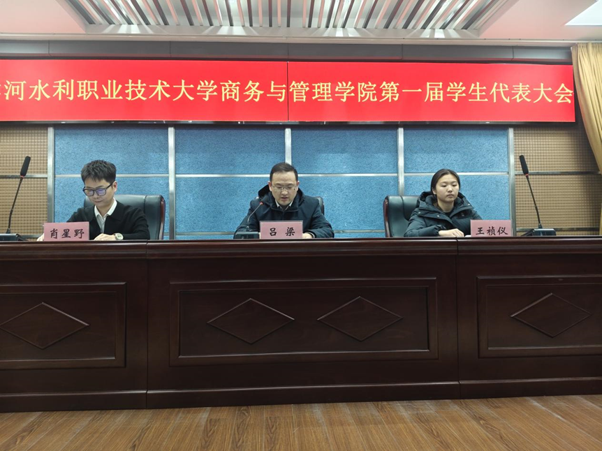 时序交替,华章新启。2025年12月30日下午,黄河水利职业技术大学商务与管理学院第一次学生代表大会在学术报告厅隆重举行。商务与管理学院院长吕梁、分团委书记肖星野、校学生会主席团成员王祯仪及全体辅导员出席会议,155名学生代表肩负全院学子重托,齐聚一堂,共商学院学生工作发展蓝图,擘画青年成长成才新路径。