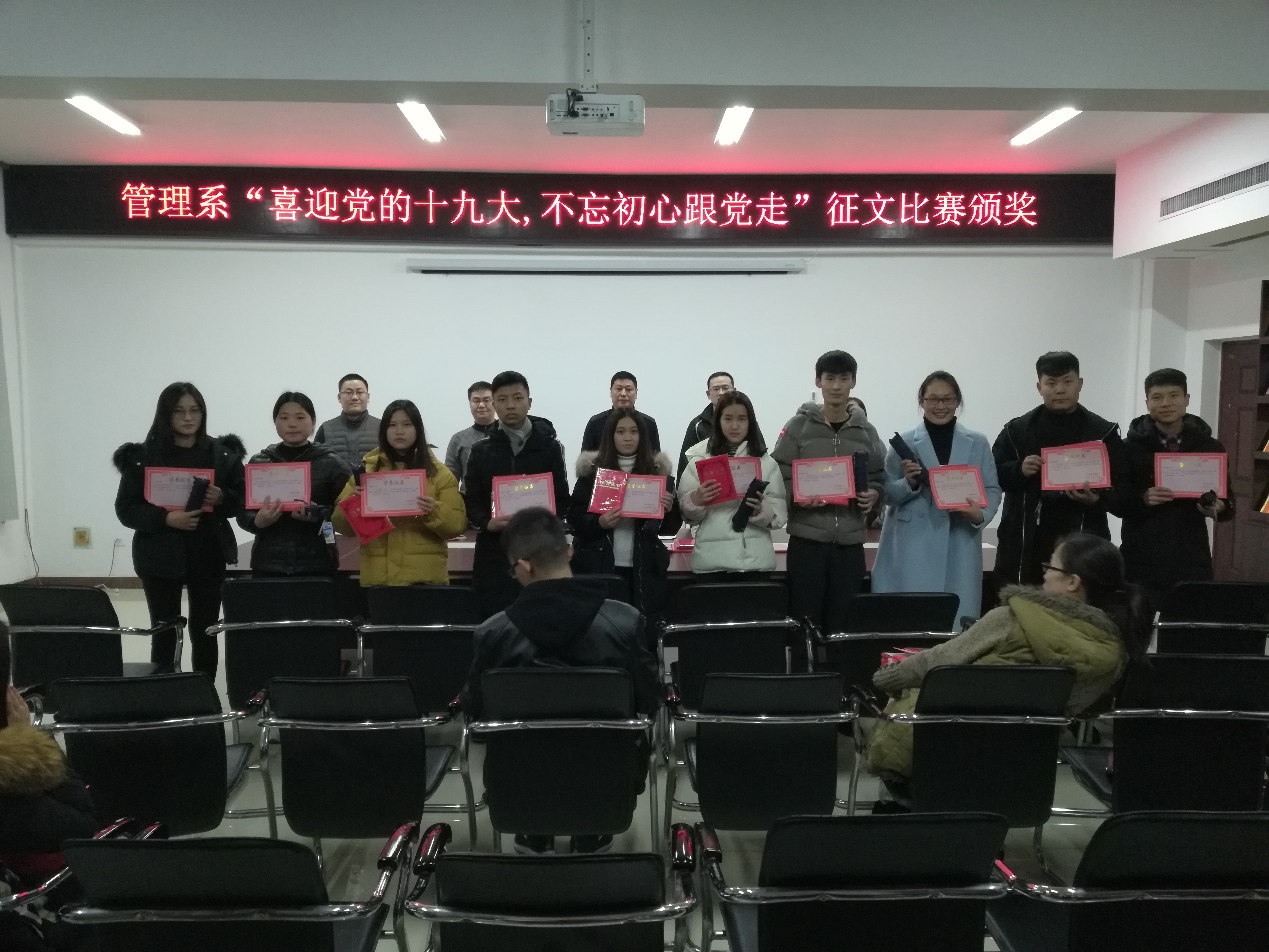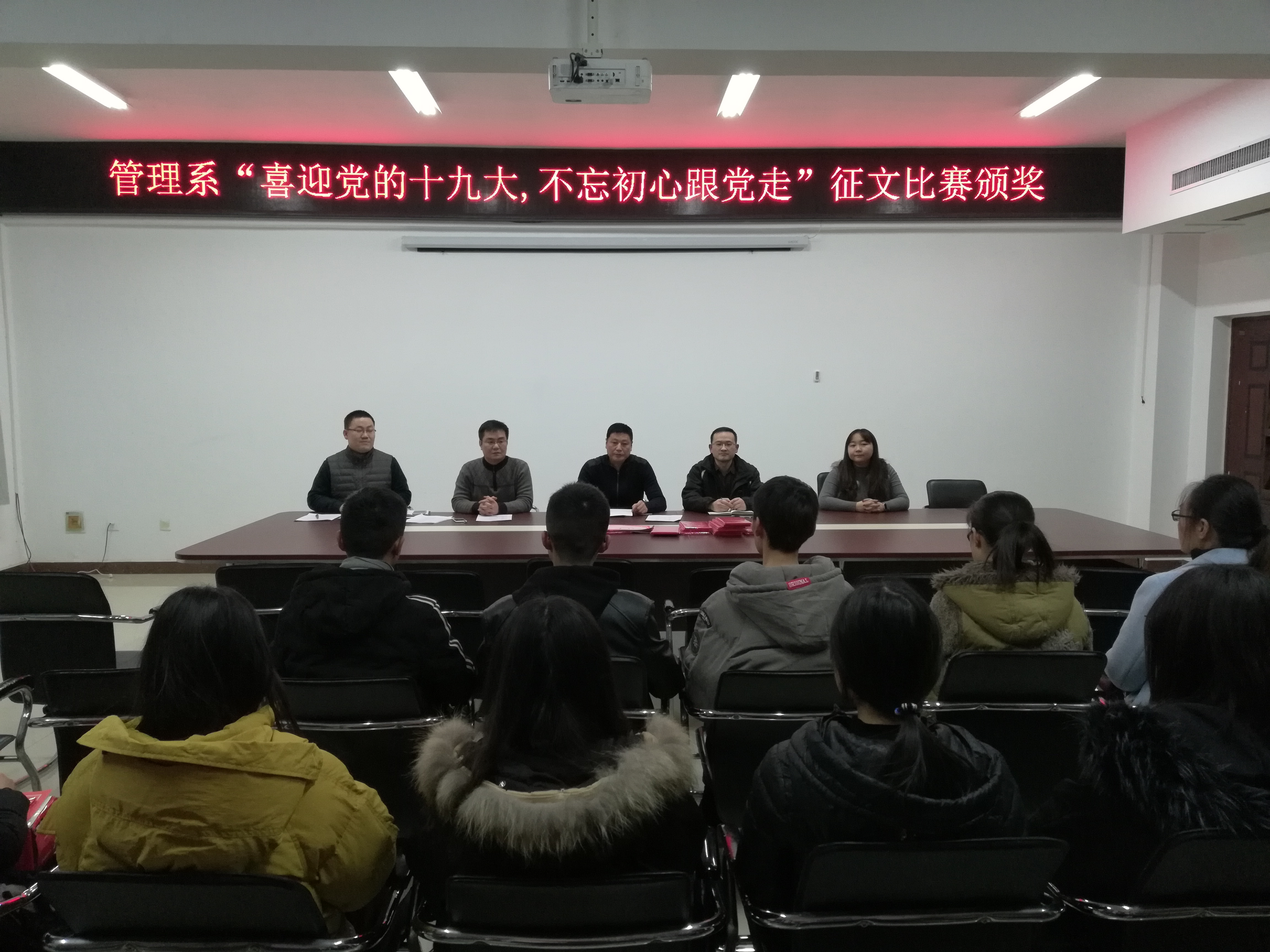 管理系举办“喜迎党的十九大,不忘初心跟党走”征文比赛颁奖仪式