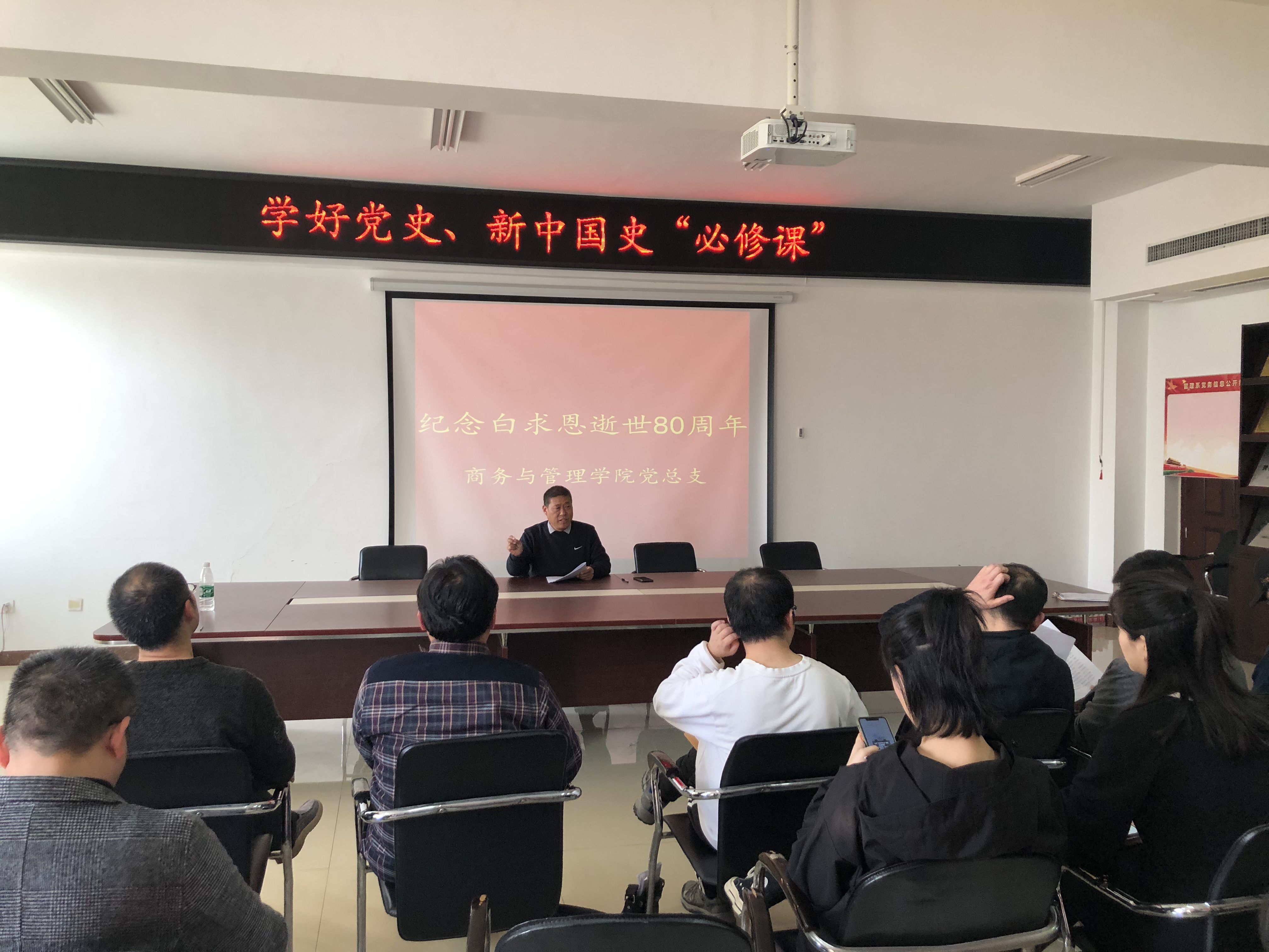 11月12日下午,按照学校通知要求,我院在党员活动室5420开展了学好党史、新中国史“必修课”专题学习。会议由院党总支书记樊建科同志主持。