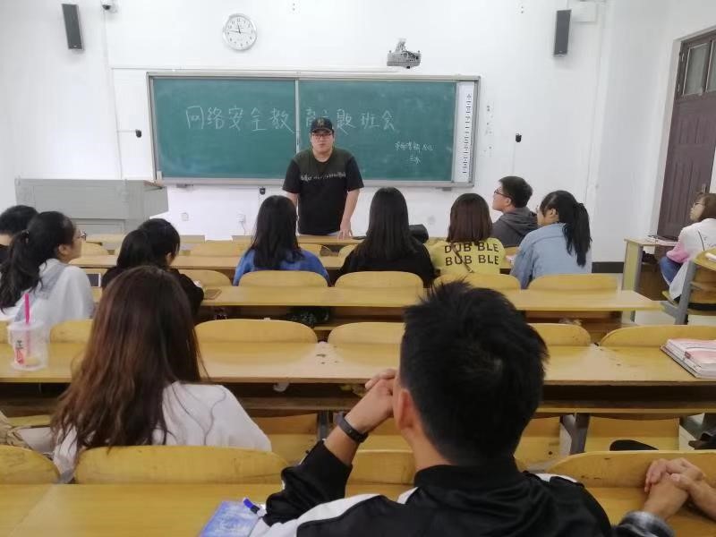 活动当天,各班级也开展了形式活泼、内容丰富、实效性强的网络安全教育主题班会,市场营销2018级辅导员张晋豪老师对当前网络安全形势,网络生活中存在着诸如网络欺凌、不良信息影响、个人隐私泄露、网络沉迷成瘾等风险与学生展开互动讨论,提高学生安全上网意识。